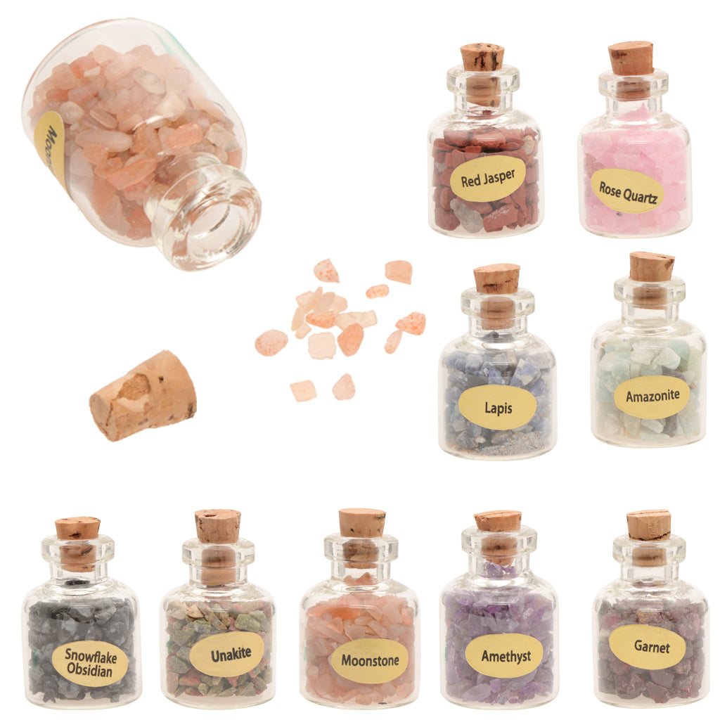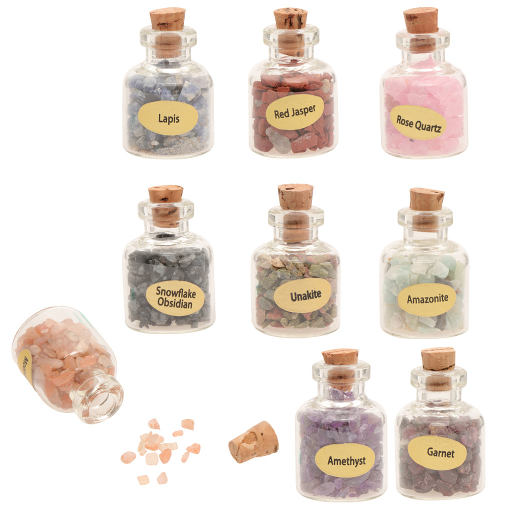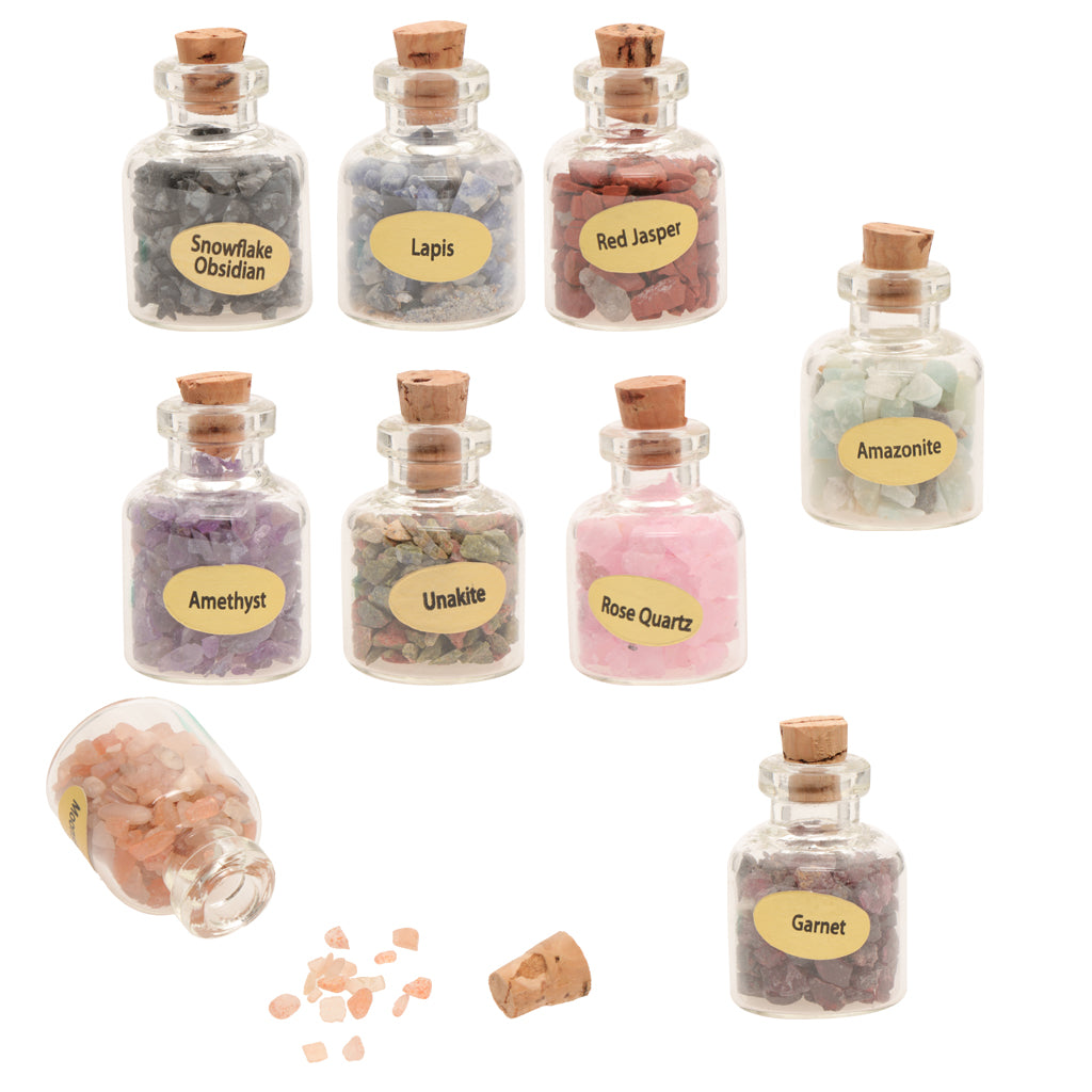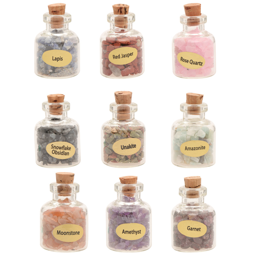 9 Mini Gemstone Bottles Crystal Tumbled Gem Wicca Stones Set for Home Decor