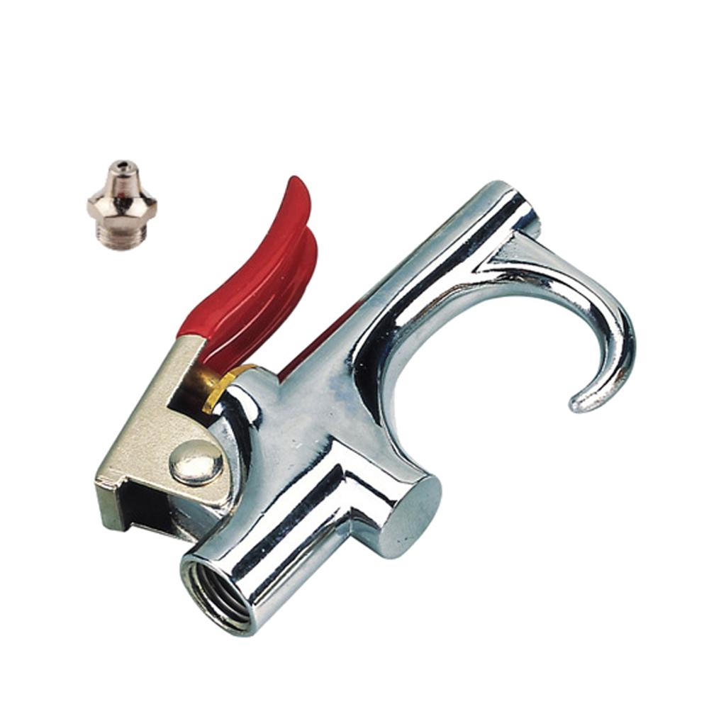 The blow gun has a convenient hang up hook and is activated by smooth lever action.