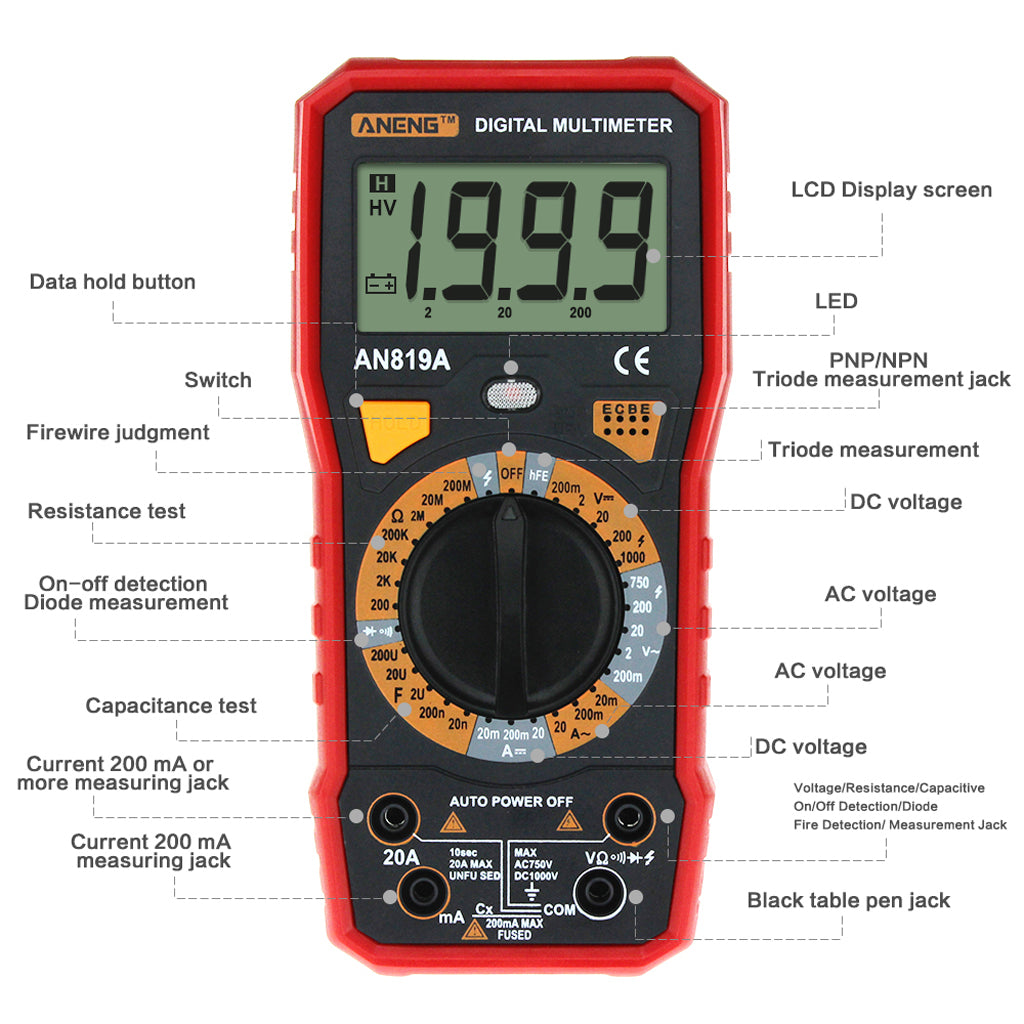 Multimeter Size: approx. 185 x 85 x 55mm/7.3 x 3.3 x 2.2inch