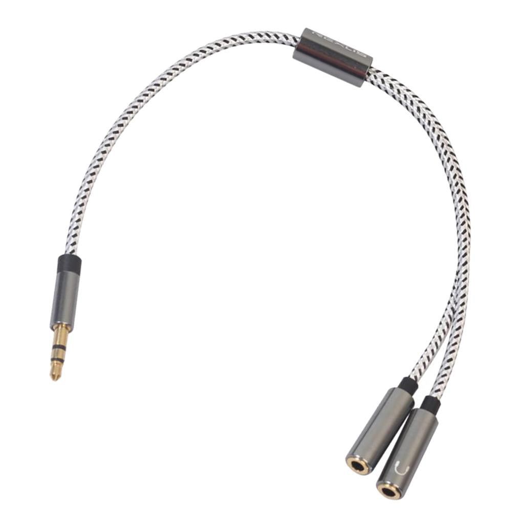 Aux Audio Headphone Mic Splitter Cable 3.5mm Female To 2 Dual Male Gray