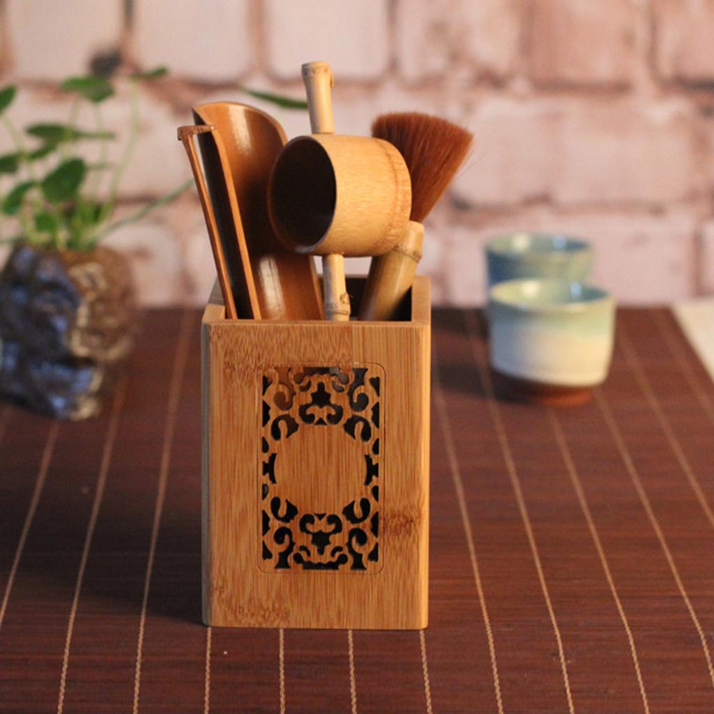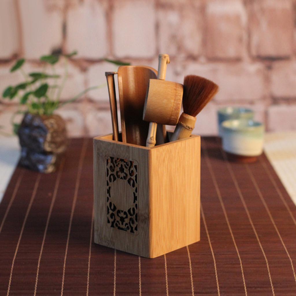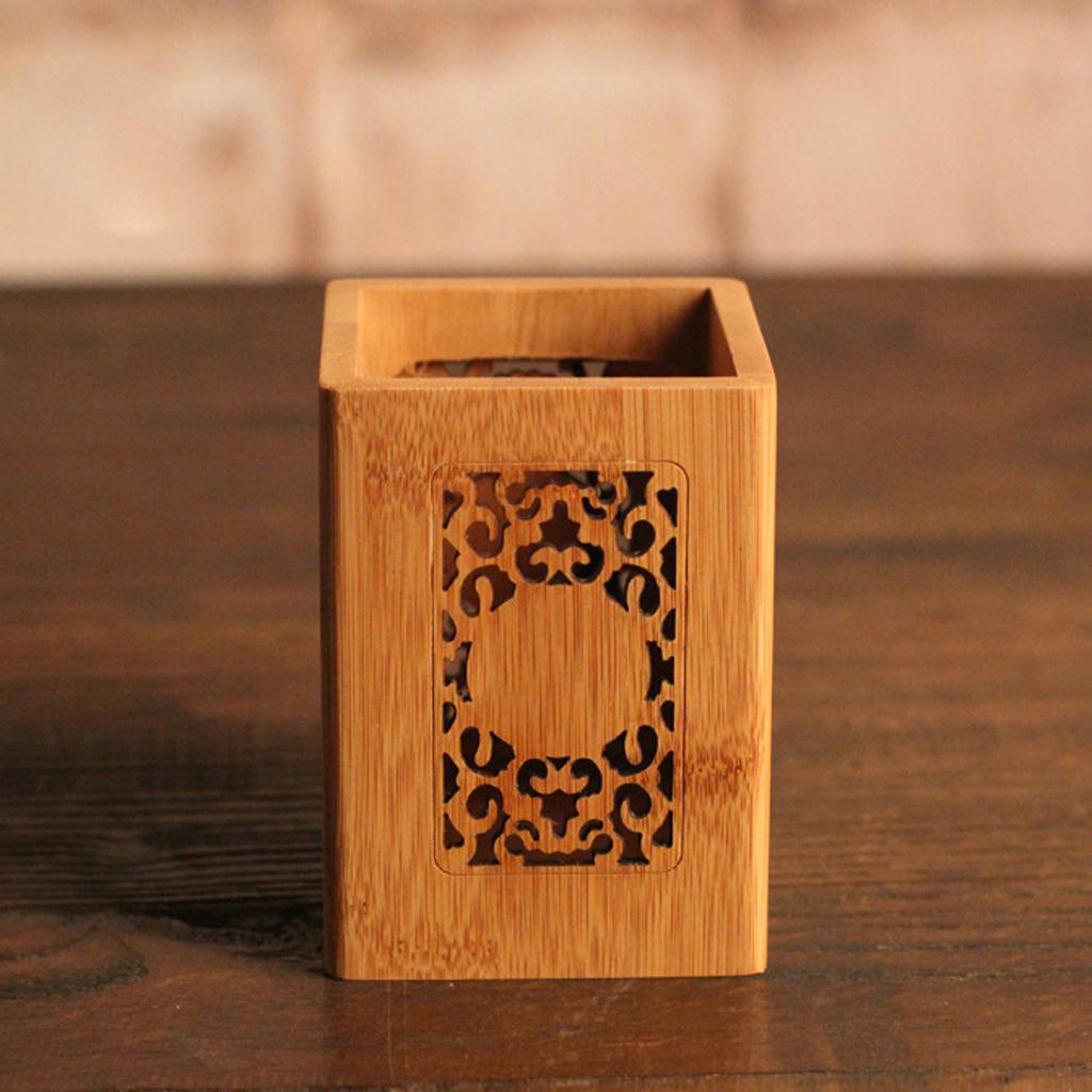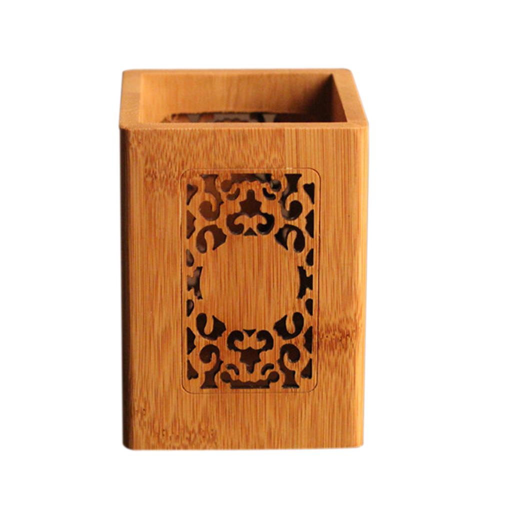 Bamboo Desk Pen Pencil Cup Holder Makeup Brush Holder Tableware Organizer
