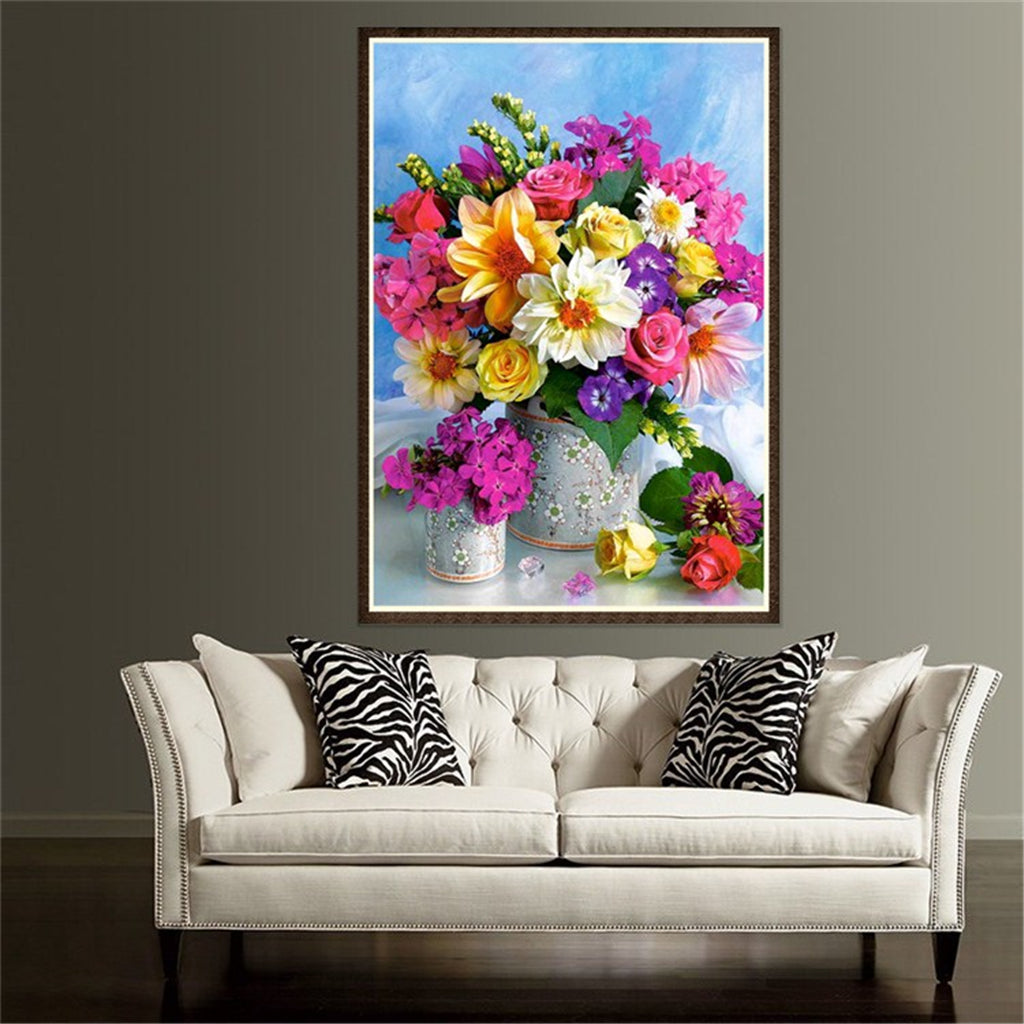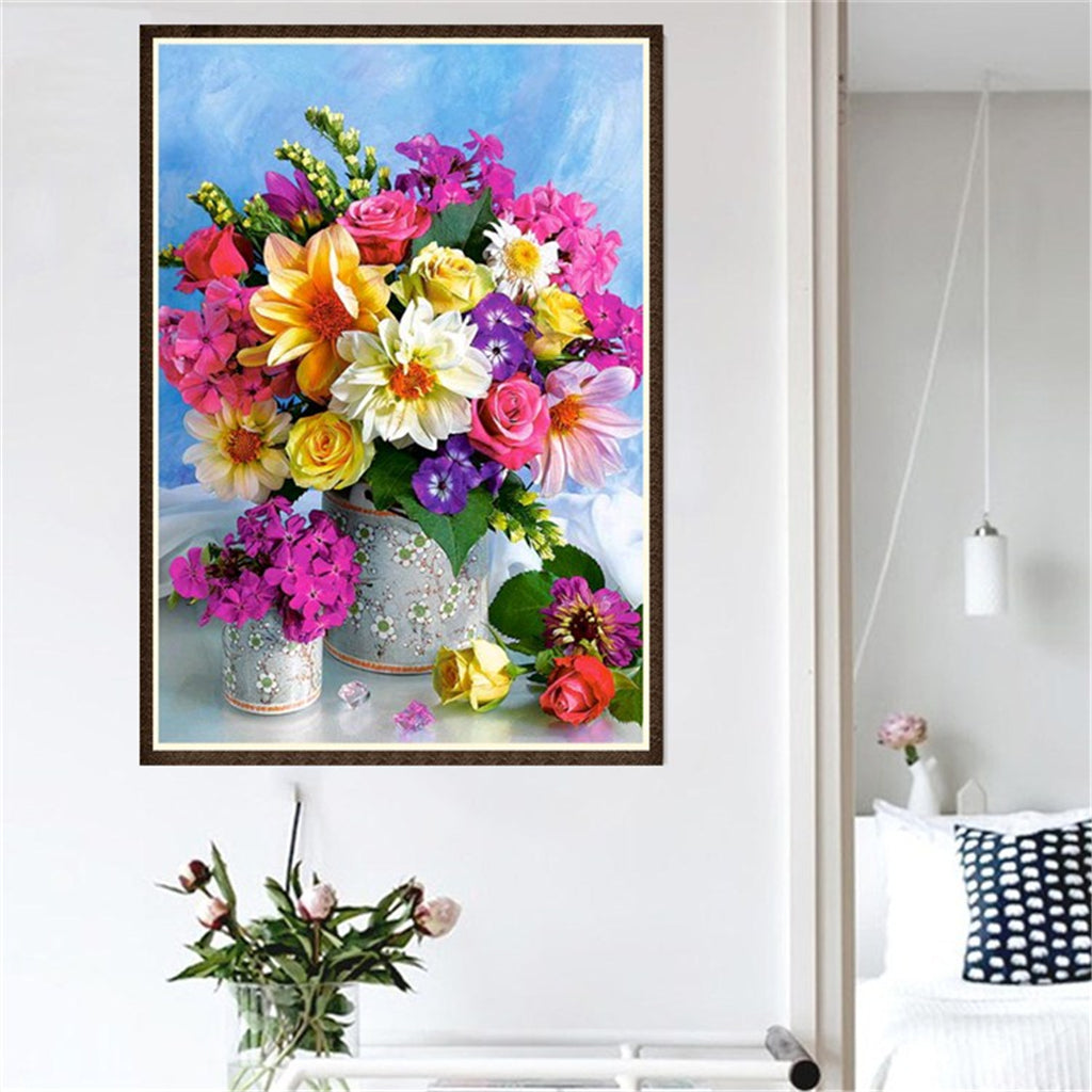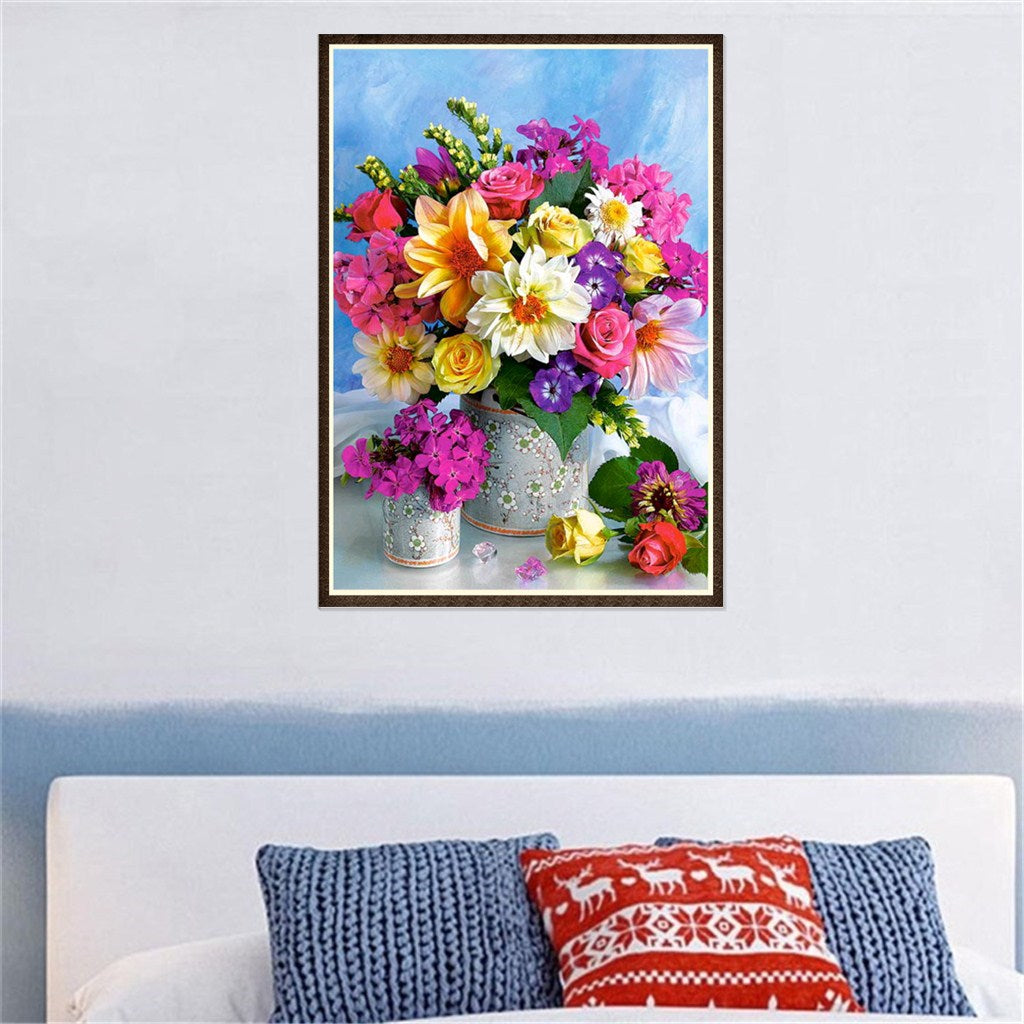 Beautiful Flower DIY 5D Diamond Sticker Embroidery Cross Stitch Painting by Number Kit Arts Craft
