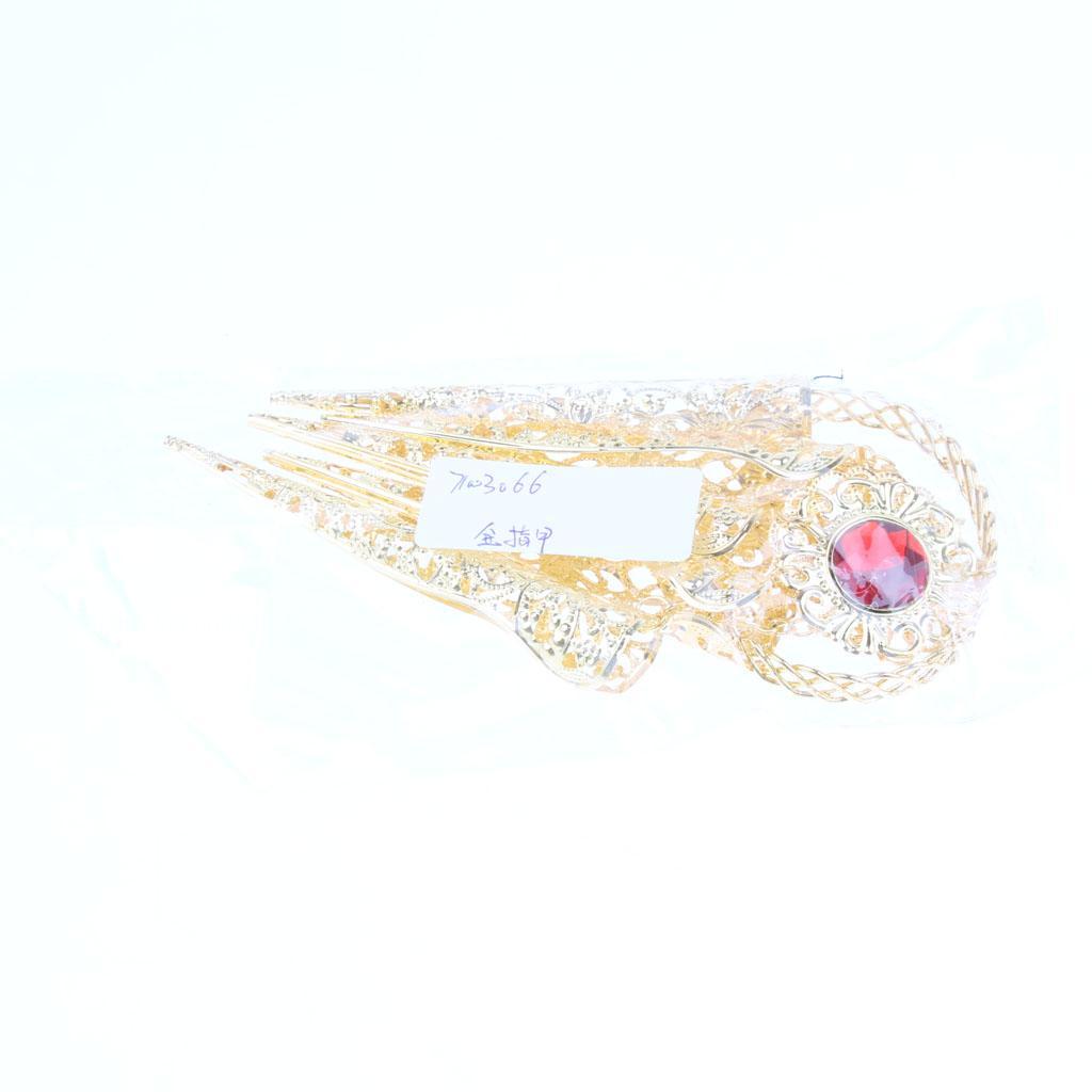 Folk dance finger jewelry, golden long nails for performing dances, with artificial red jewelry.