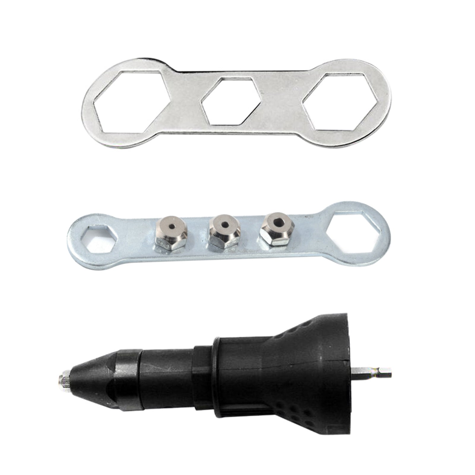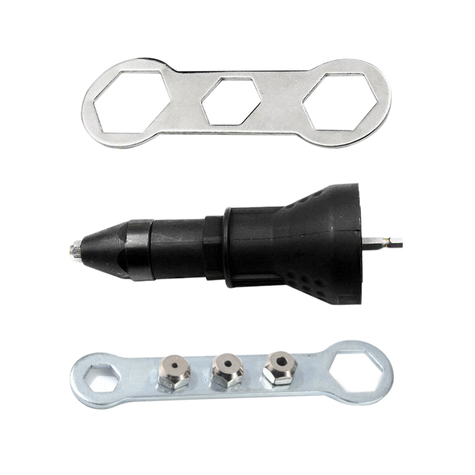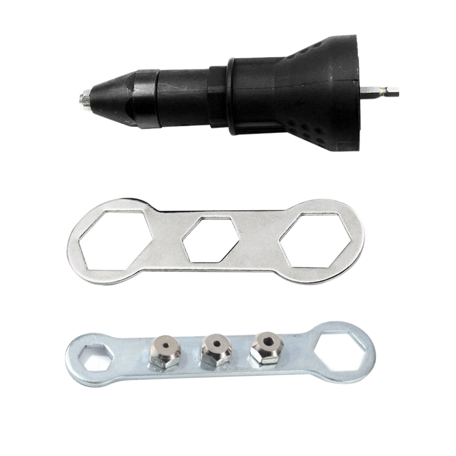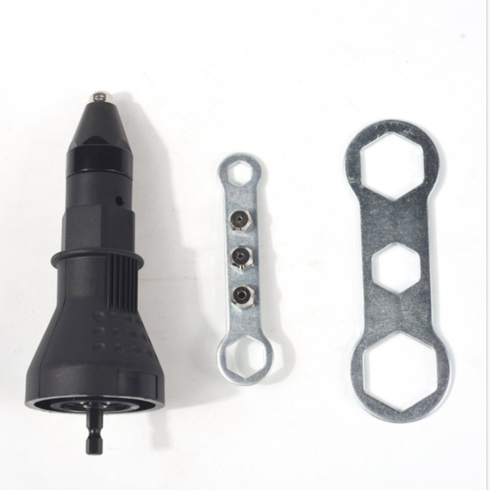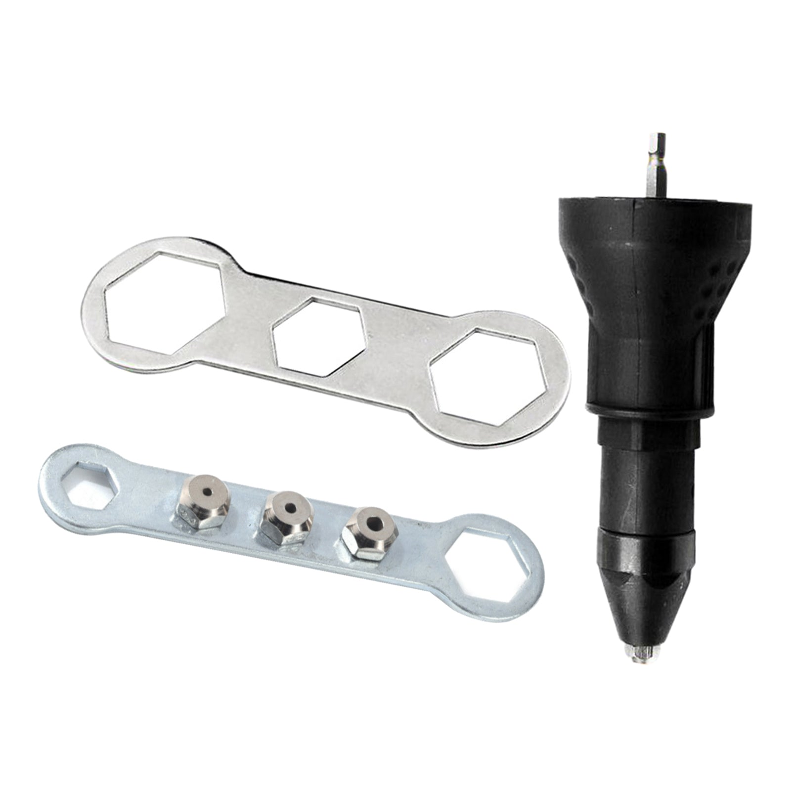 Black 6.35mm Shank Electric Rivet Nut Gun Cordless Riveting Drill Adapter Attachment Tool 4 Nozzle (1.8 mm, 2.2 mm, 2.8 mm, 3.2 mm)