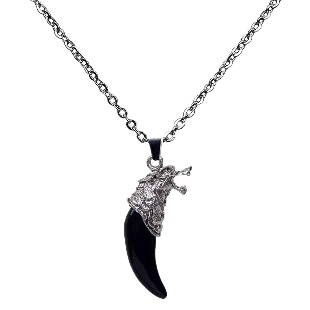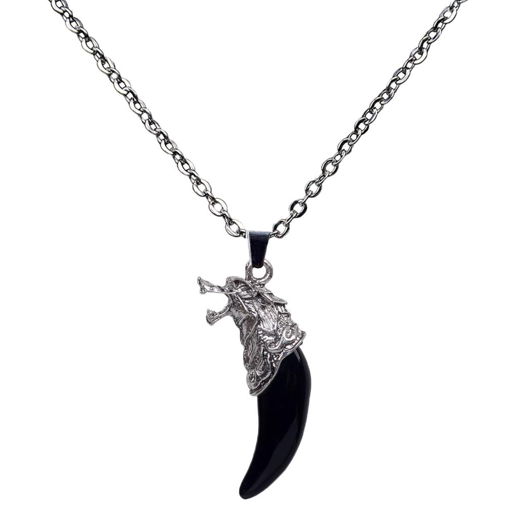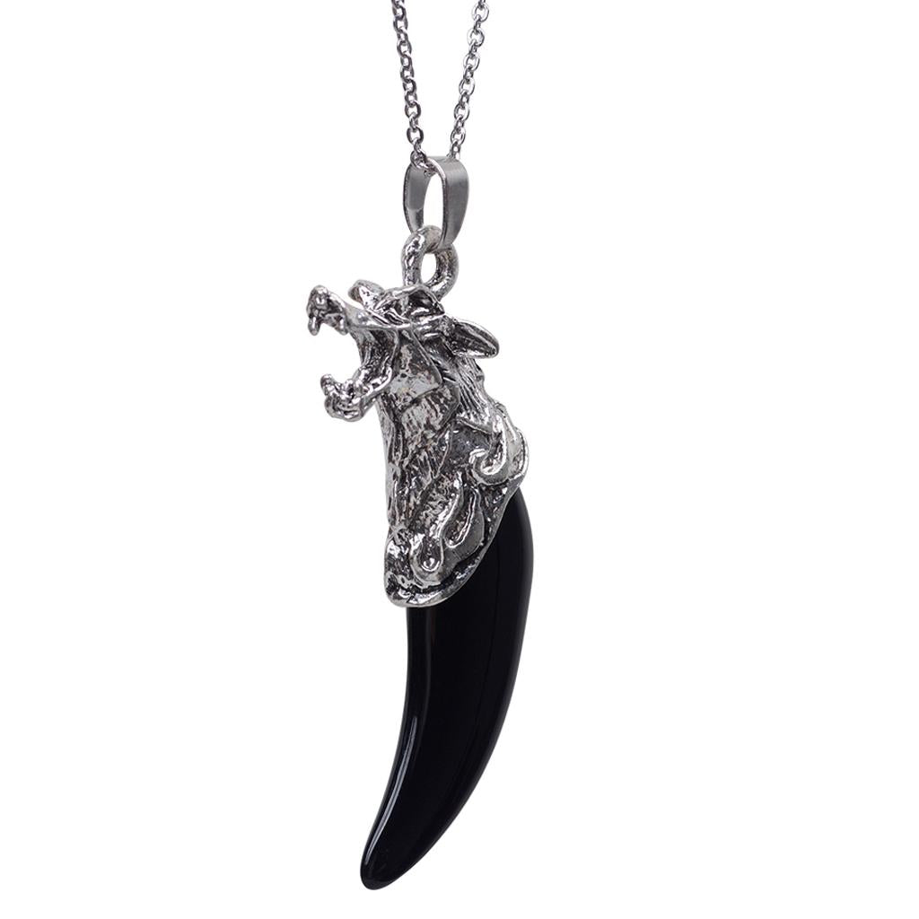 Stainless steel chain necklace, alloy resin wolf teeth head design.