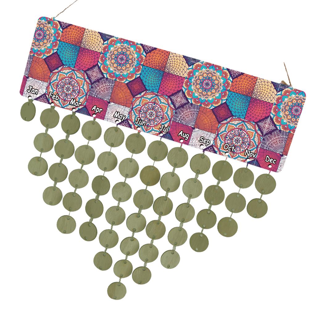 Bohemia Style Reminder Calendar Wooden Board Plaque Planner Hanging Decor
