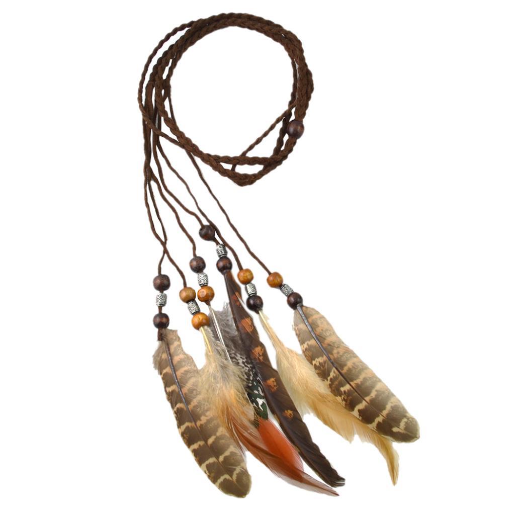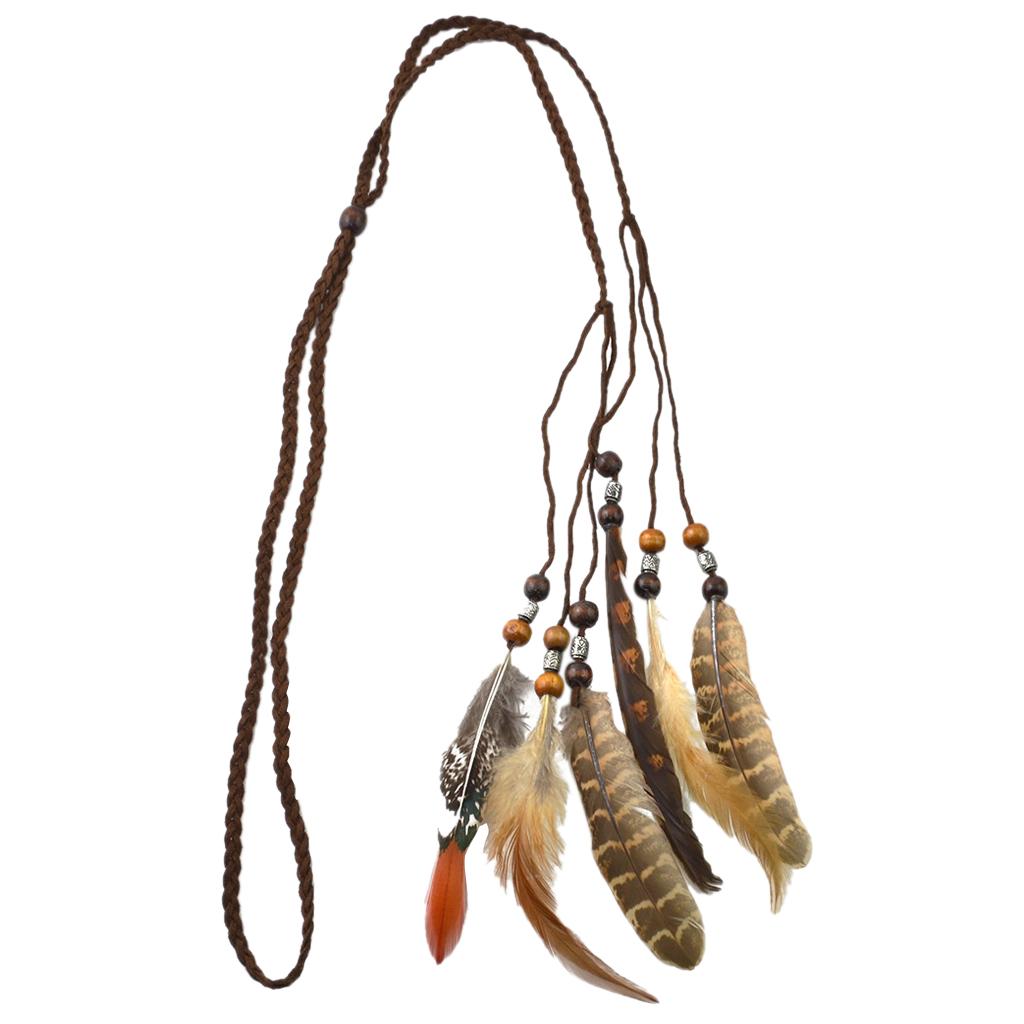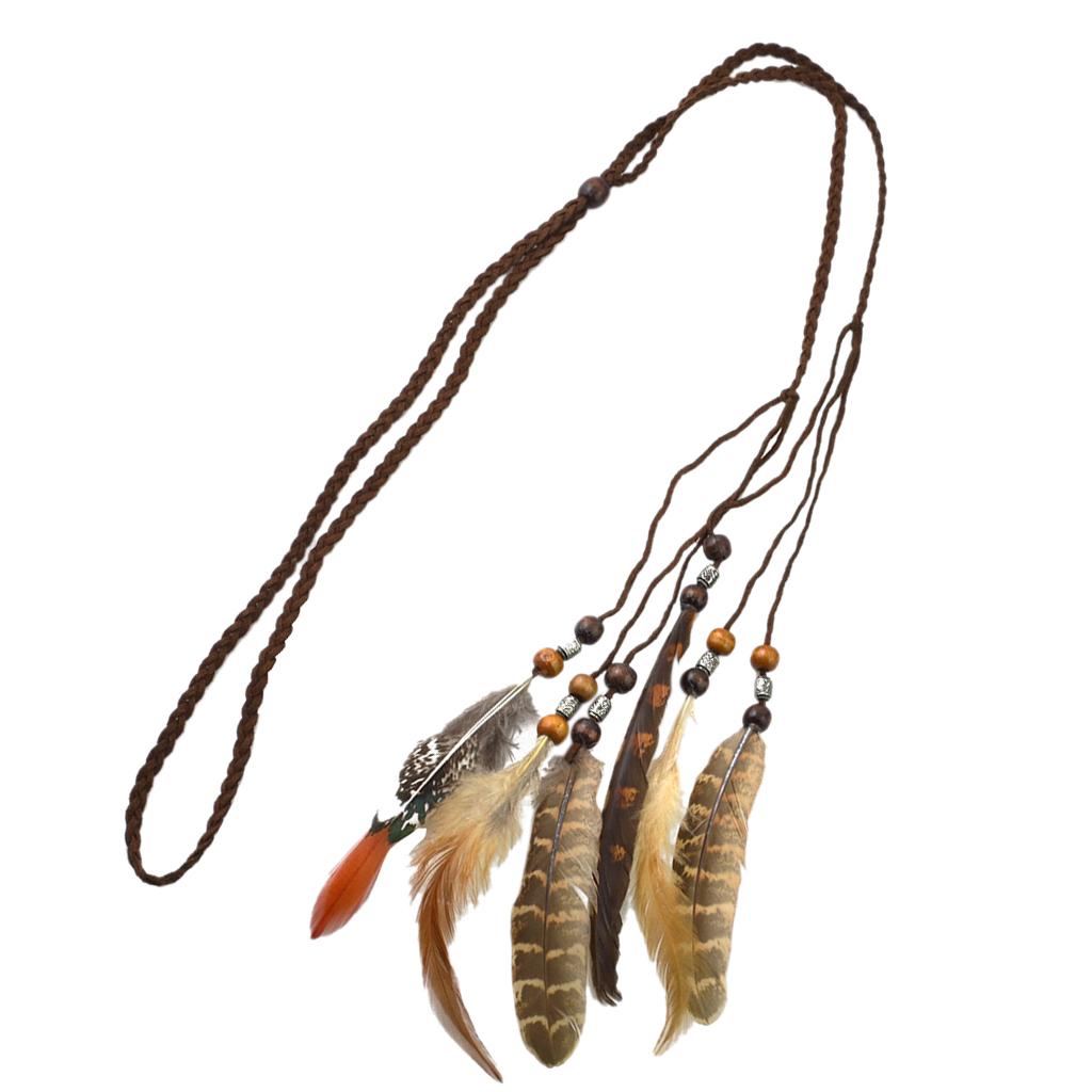 Bohemian Feathers Headband Headpiece Handmade Braided Rope Cord Headband