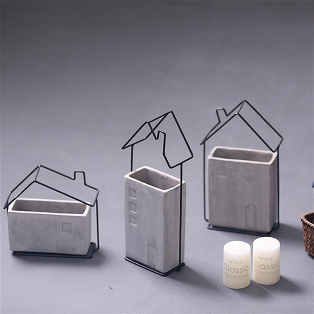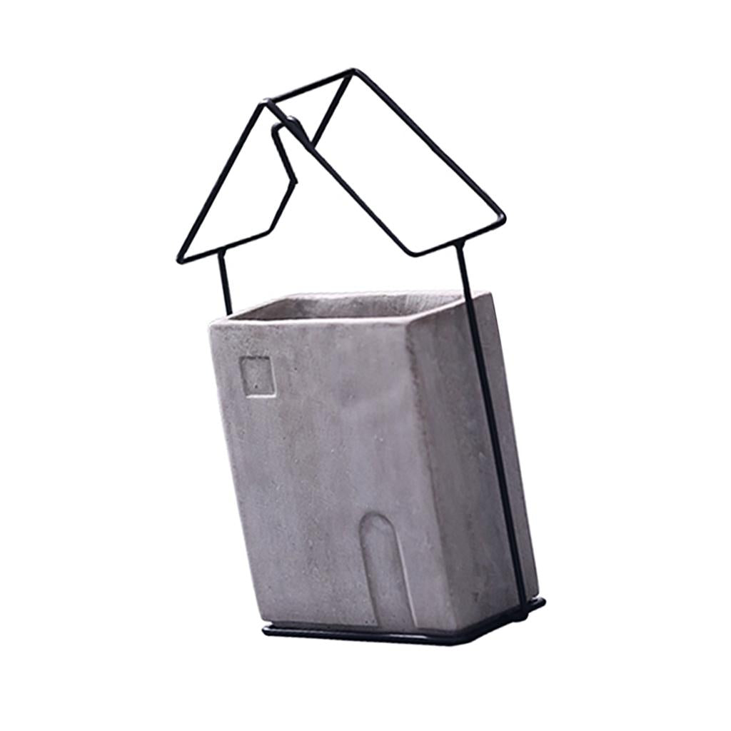 Cement Succulent Planter Pot Plants Flower Pot Decorative Bonsai Cactus Planter with Iron Stand