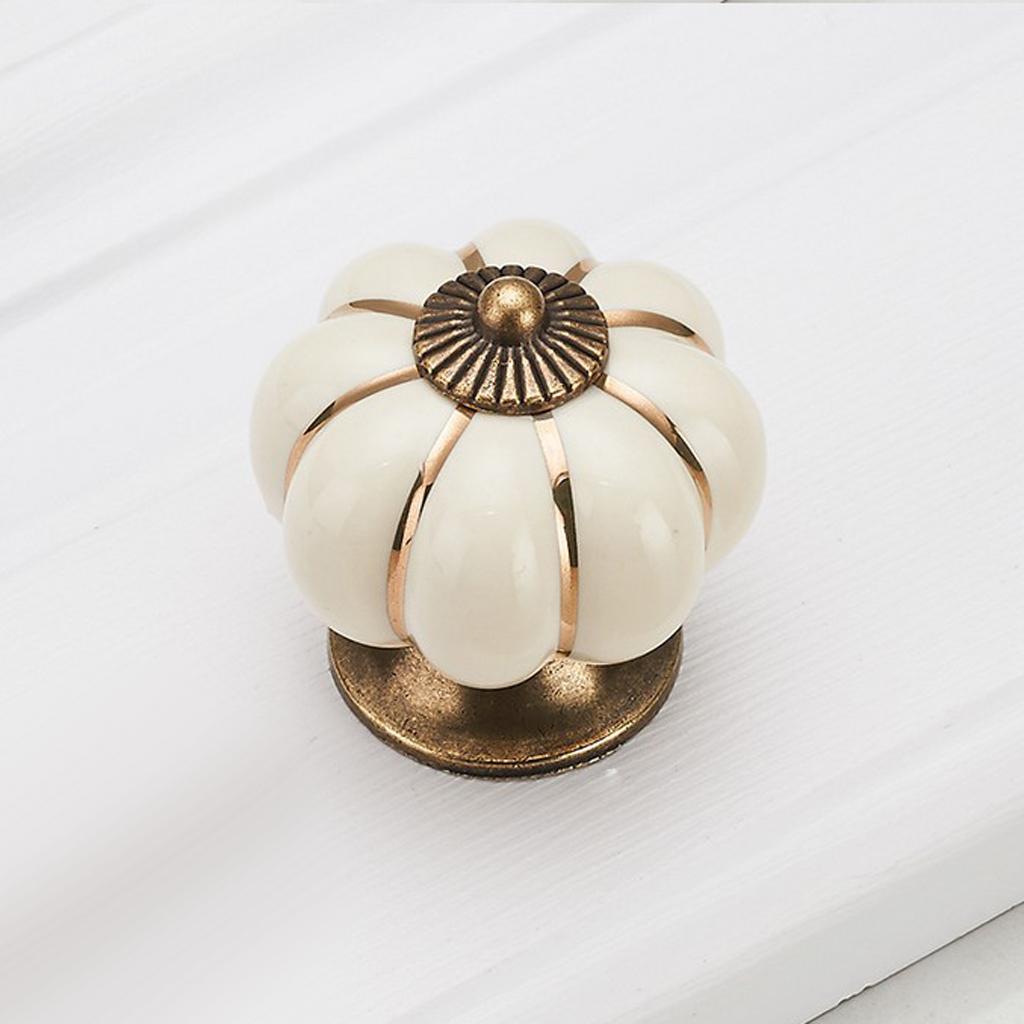 Ceramic Cute Pumpkin Style Kitchen Cabinet Pull Knob Handle Hardware White