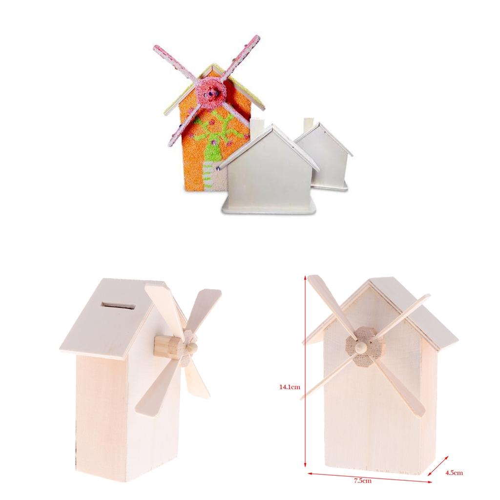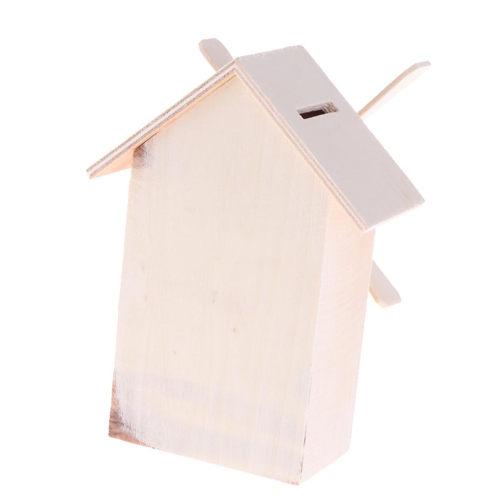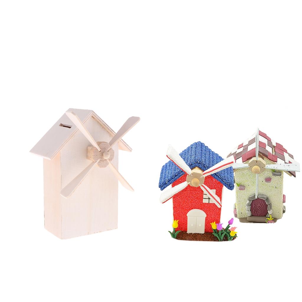 Unfinished wood windmill shapes money box