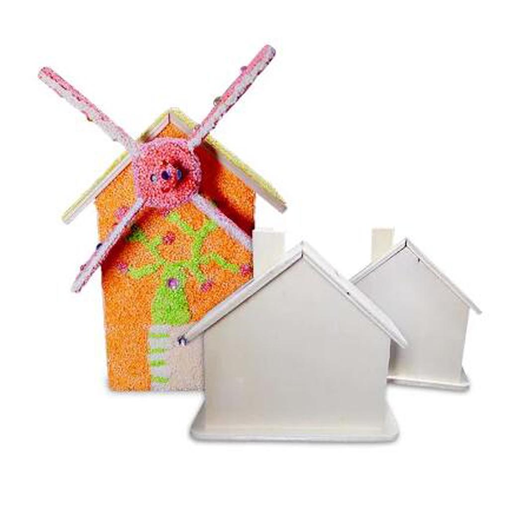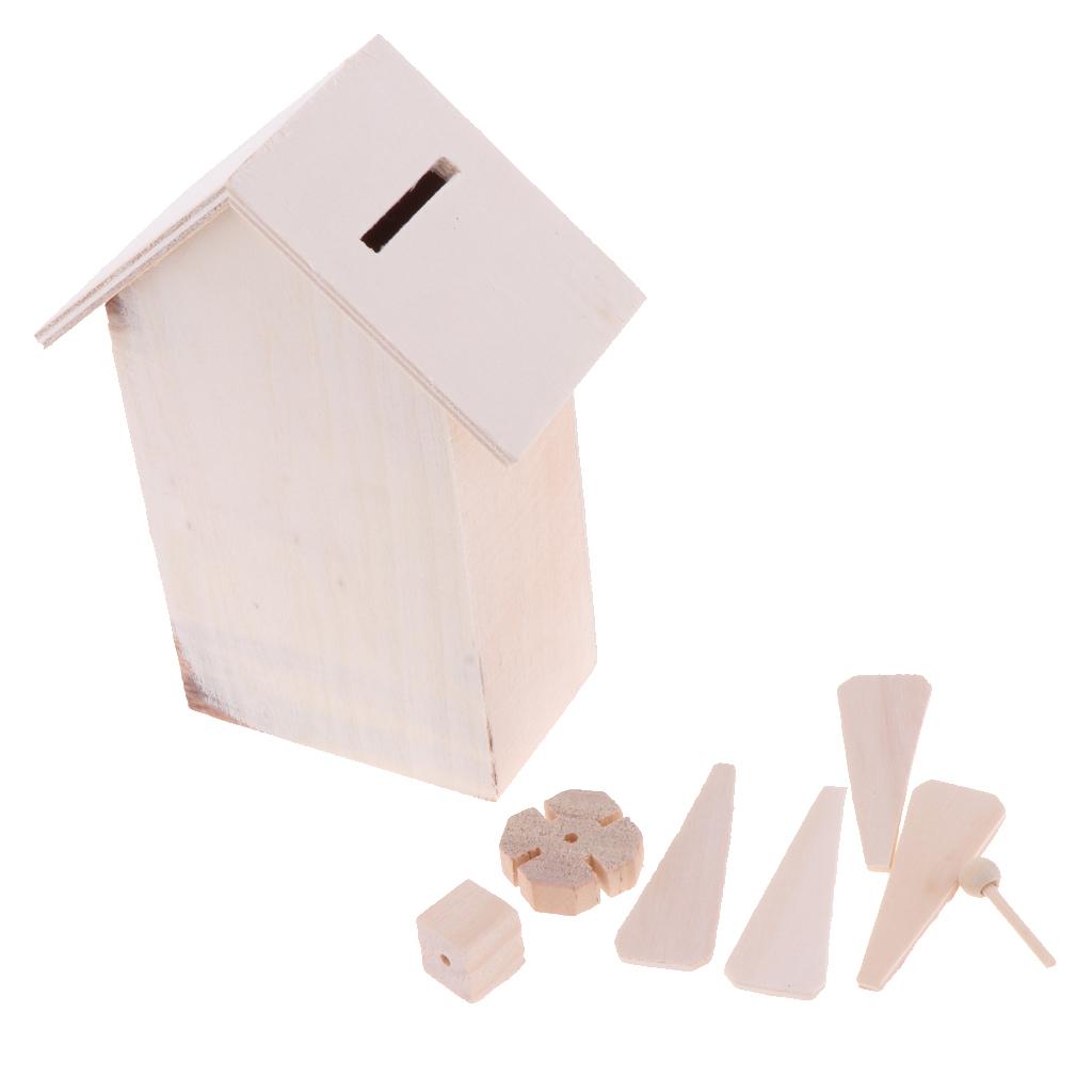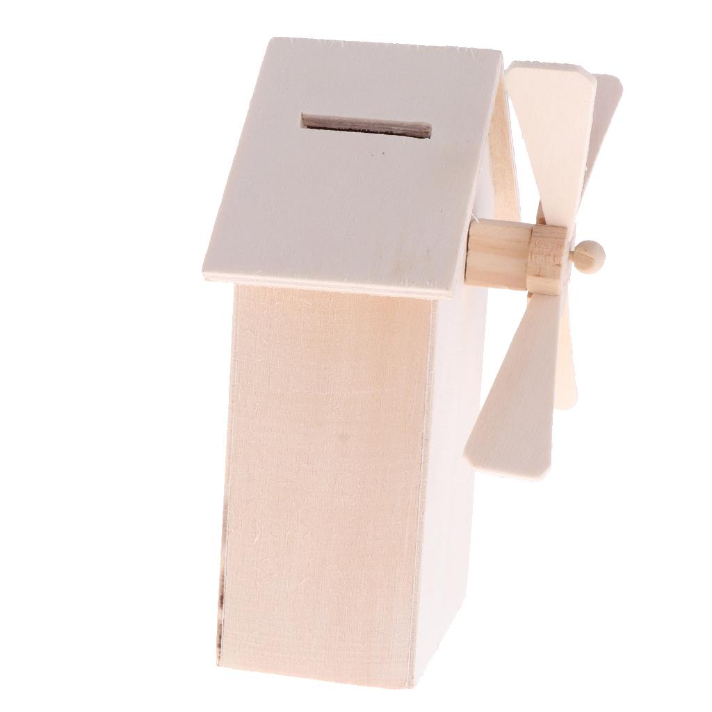 Unfinished wood windmill shapes money box