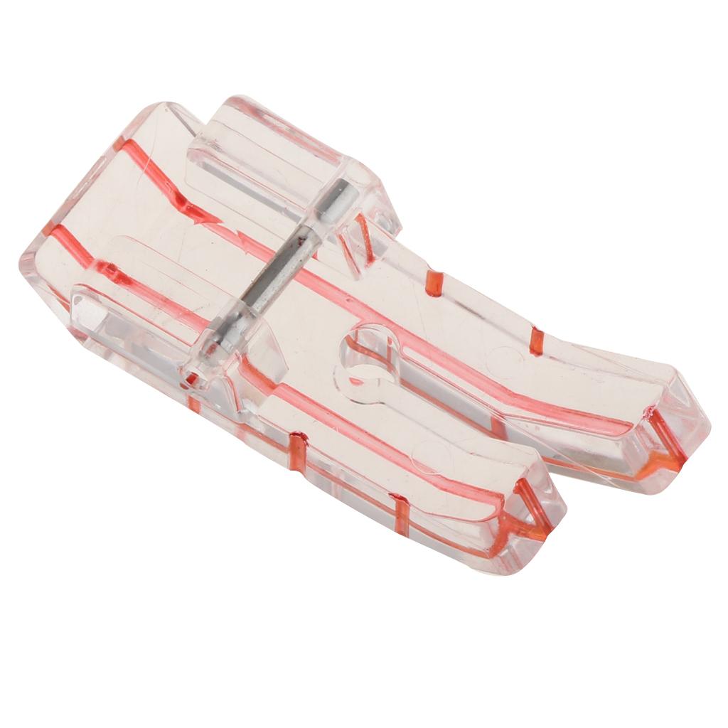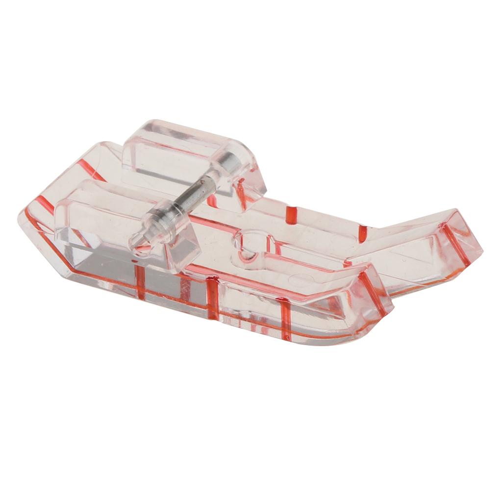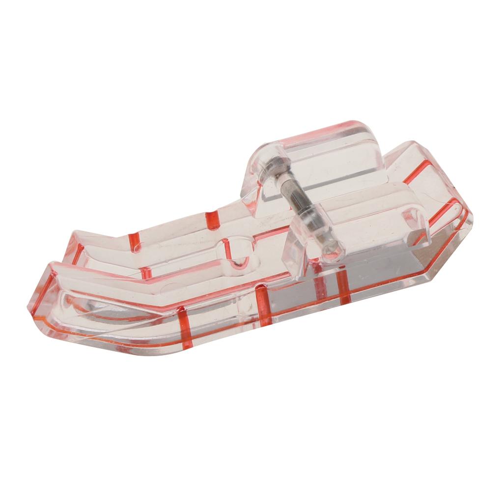 This foot is notched 1/4" in front of and behind needle center as a reference for starting, stopping and pivoting.