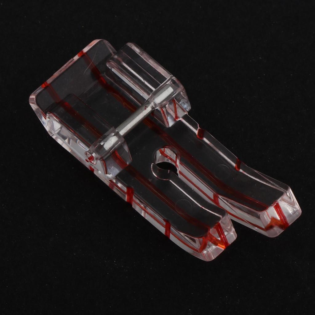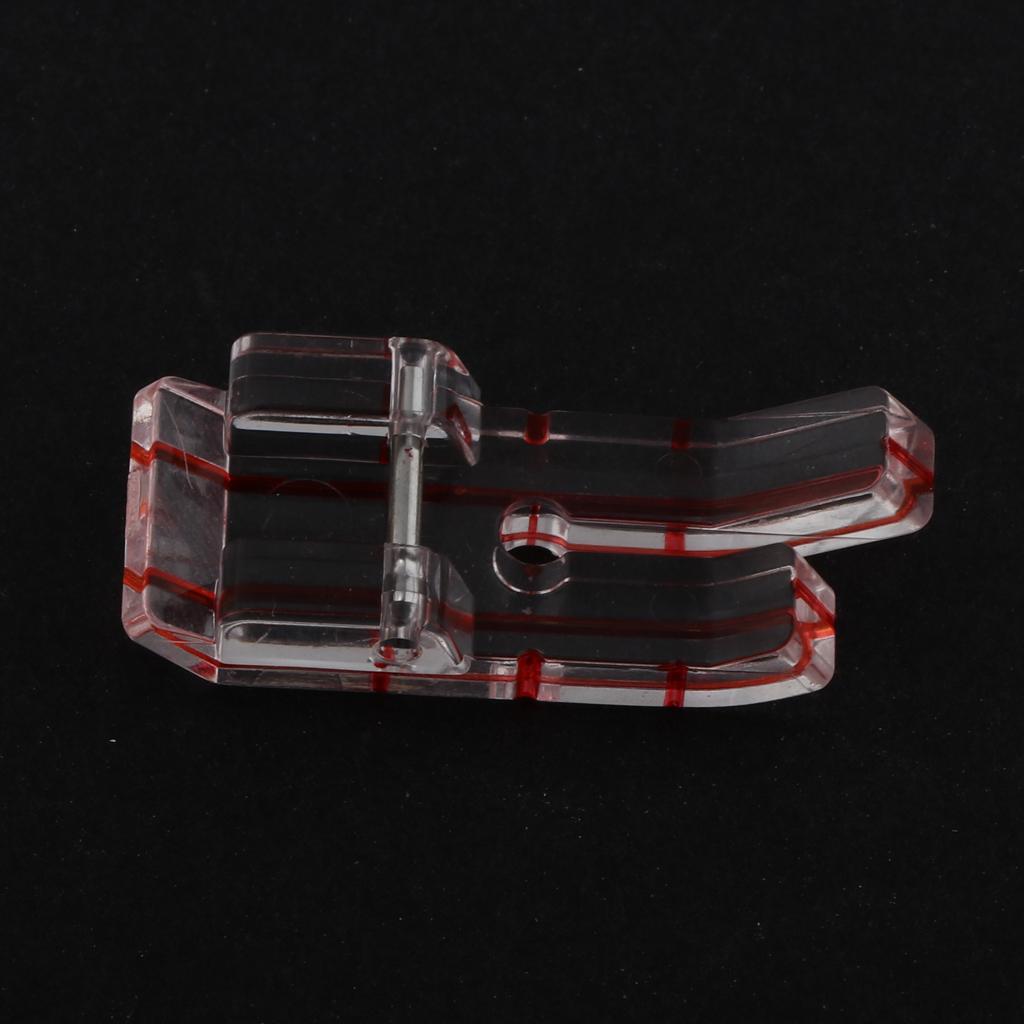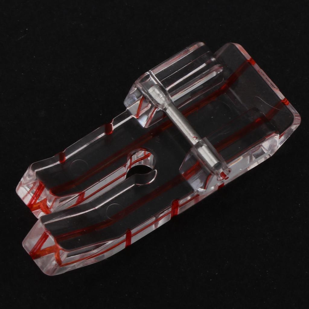 This foot is notched 1/4" in front of and behind needle center as a reference for starting, stopping and pivoting.