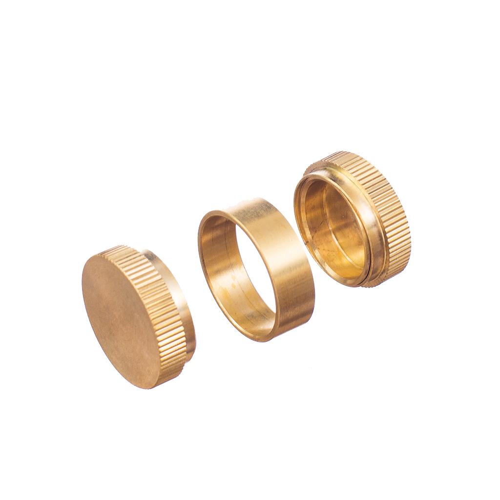 Magician show two cylindrical metal caps and a metal ring and offer them to a person in the crowd for examination(no force).