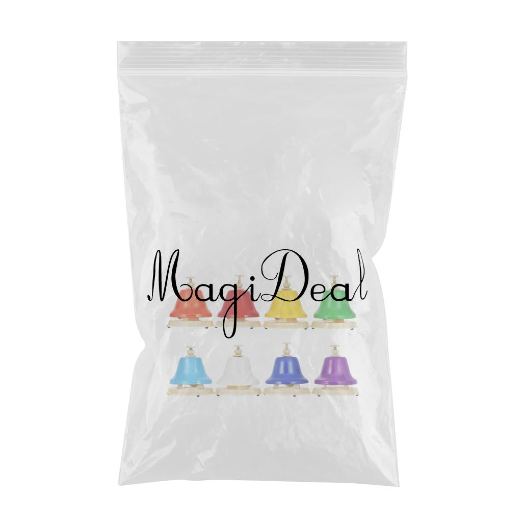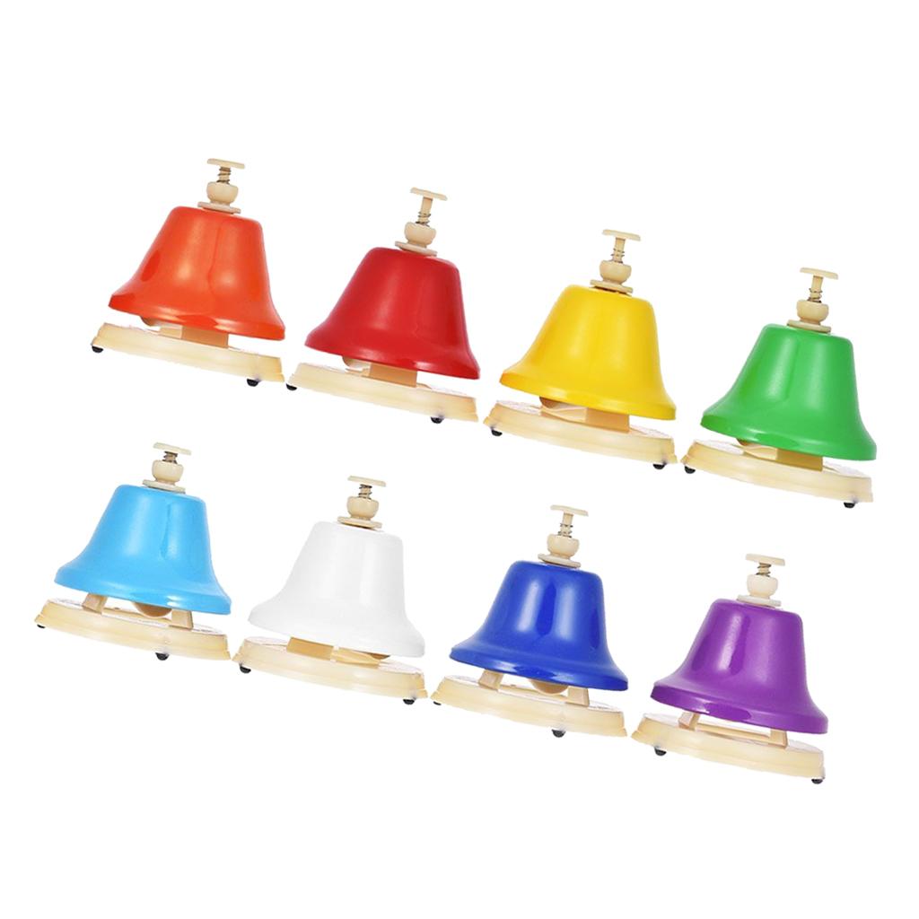 8 handbells in 1 set, made of metal, durable, exquisite and colorful.