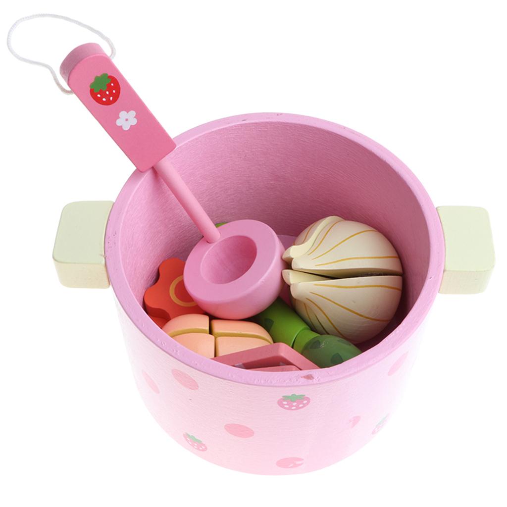 Includes 5 vegetables, 1 wooden cutting plate, 1 pot, 1 ladle and 1 chopping board.