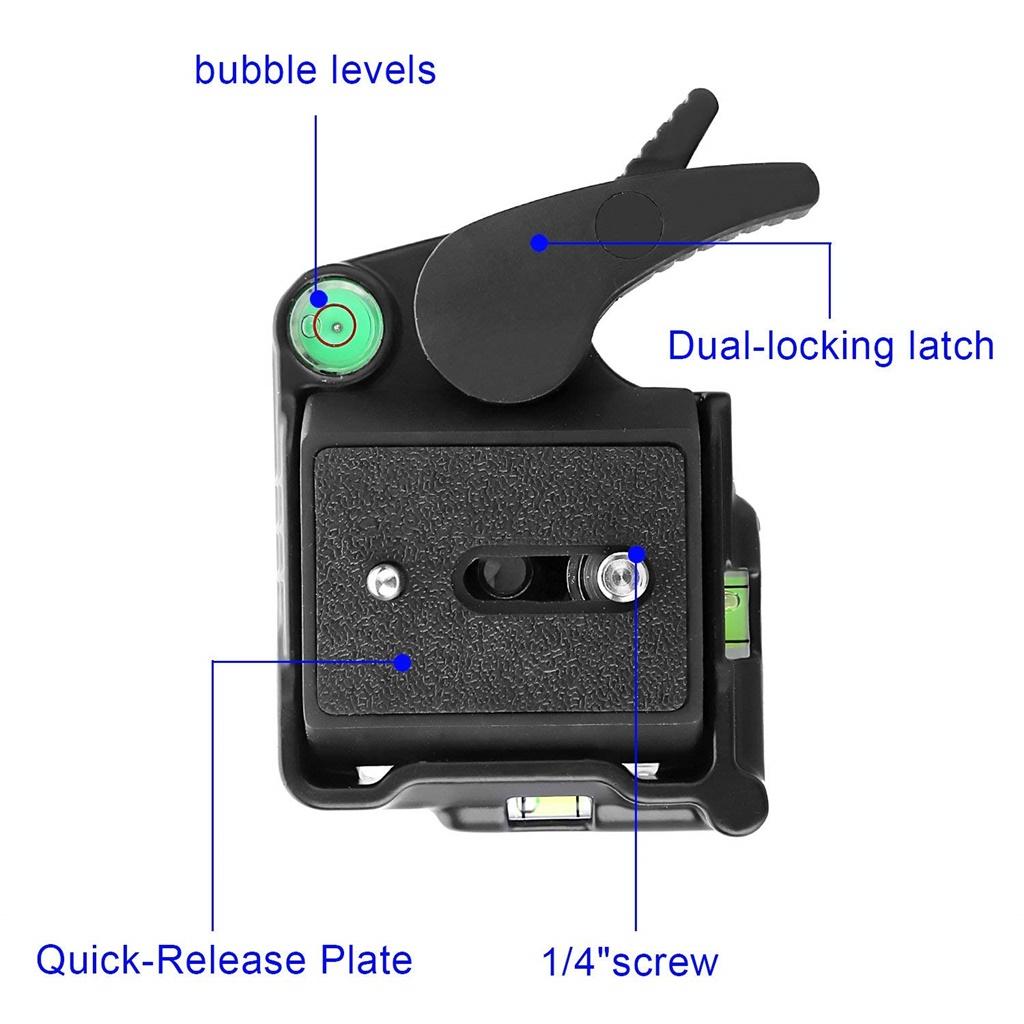 Using a base plate that easily and accurately level your camera in any position, the quick release assembly is a compact quick release system.