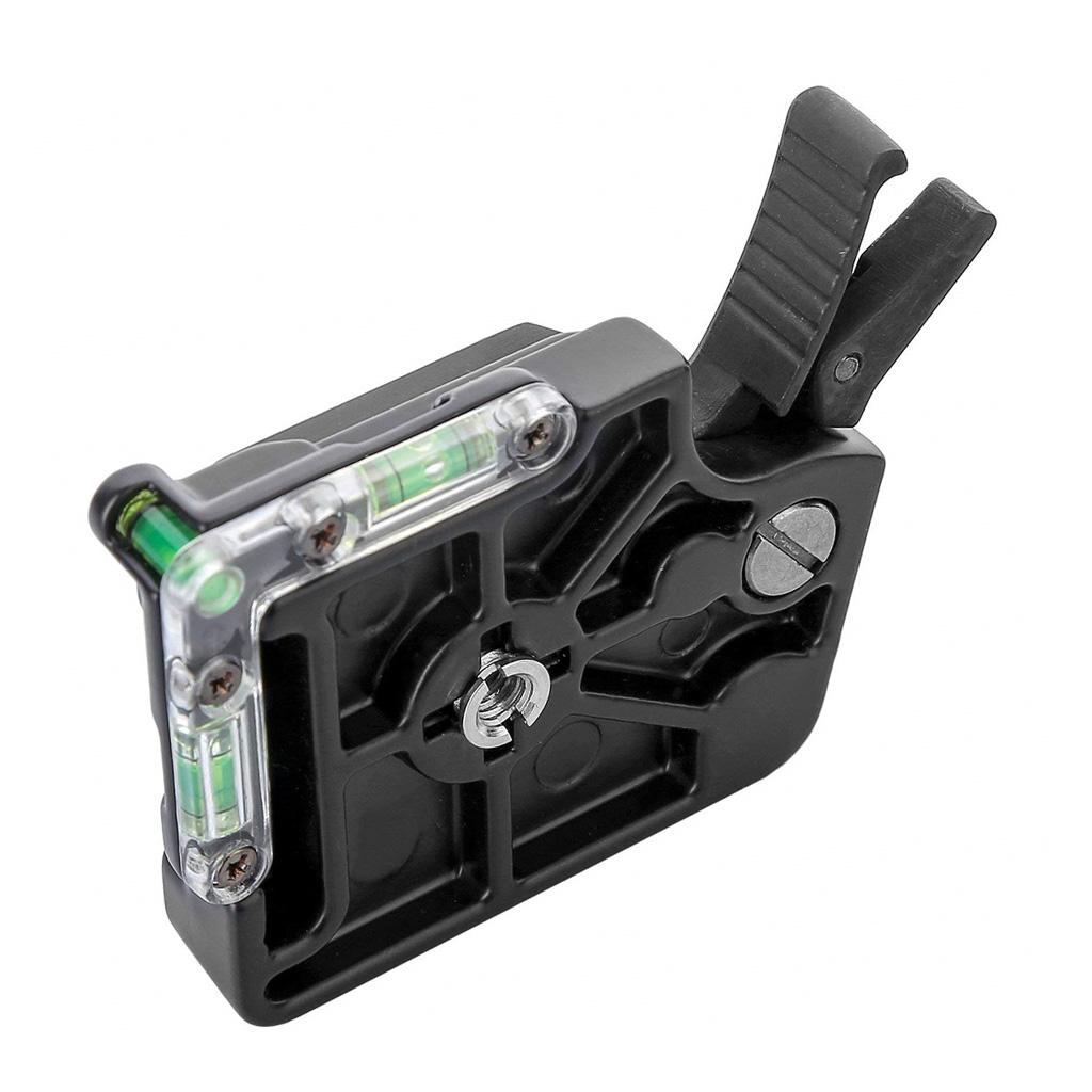 Using a base plate that features 3 bubble levels that easily and accurately level your camera in any position, the quick release assembly is a compact quick release system.