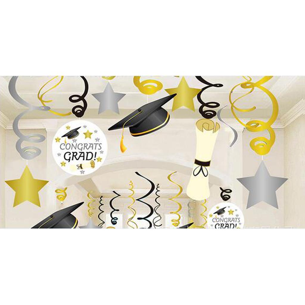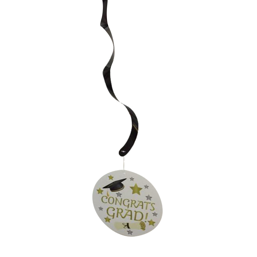 Hanging swirls decorated with congrats grad sign