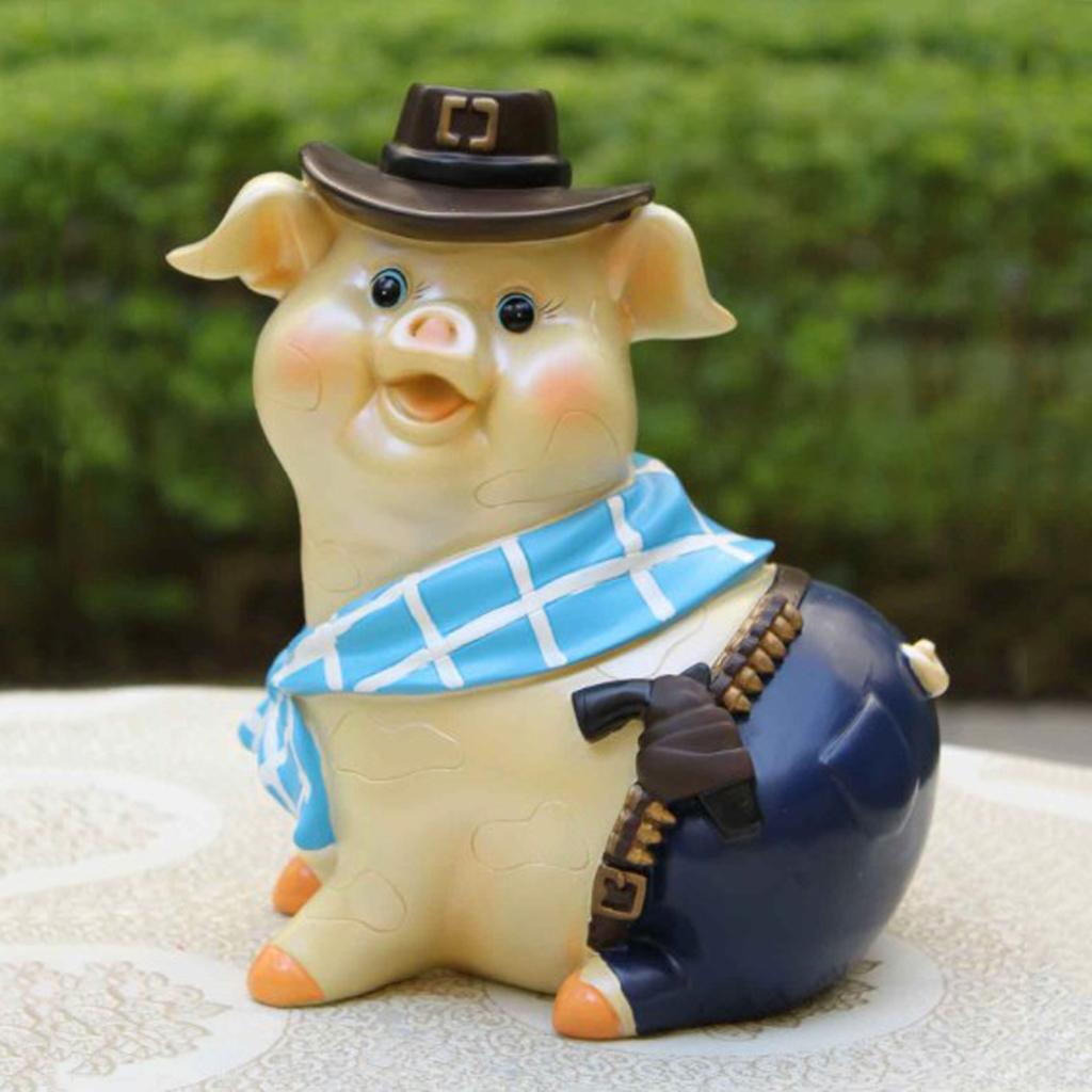 Creative Resin West Cowboy Saving Money Piggy Bank Coin Box Desktop Ornament Kids Toy Birthday Gift