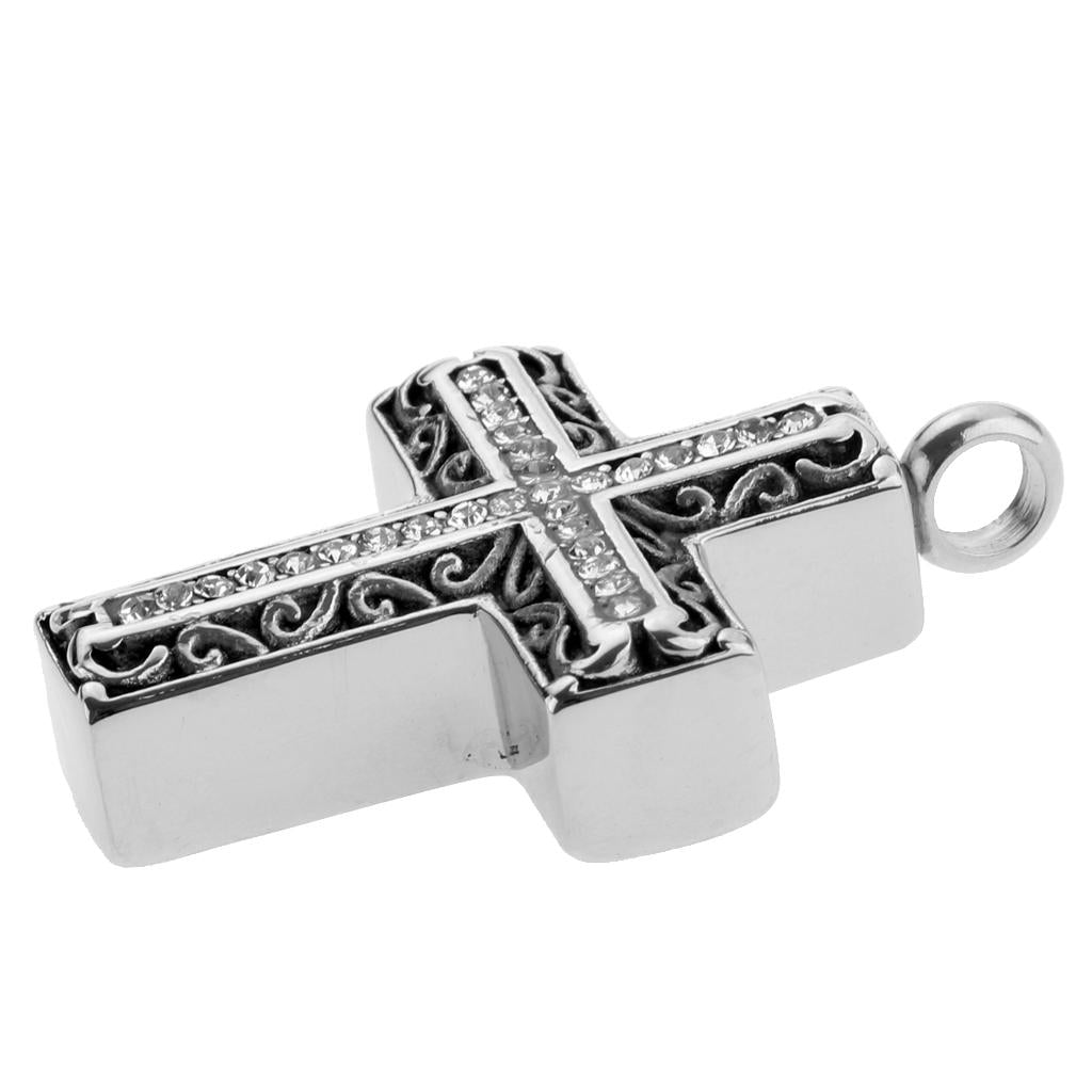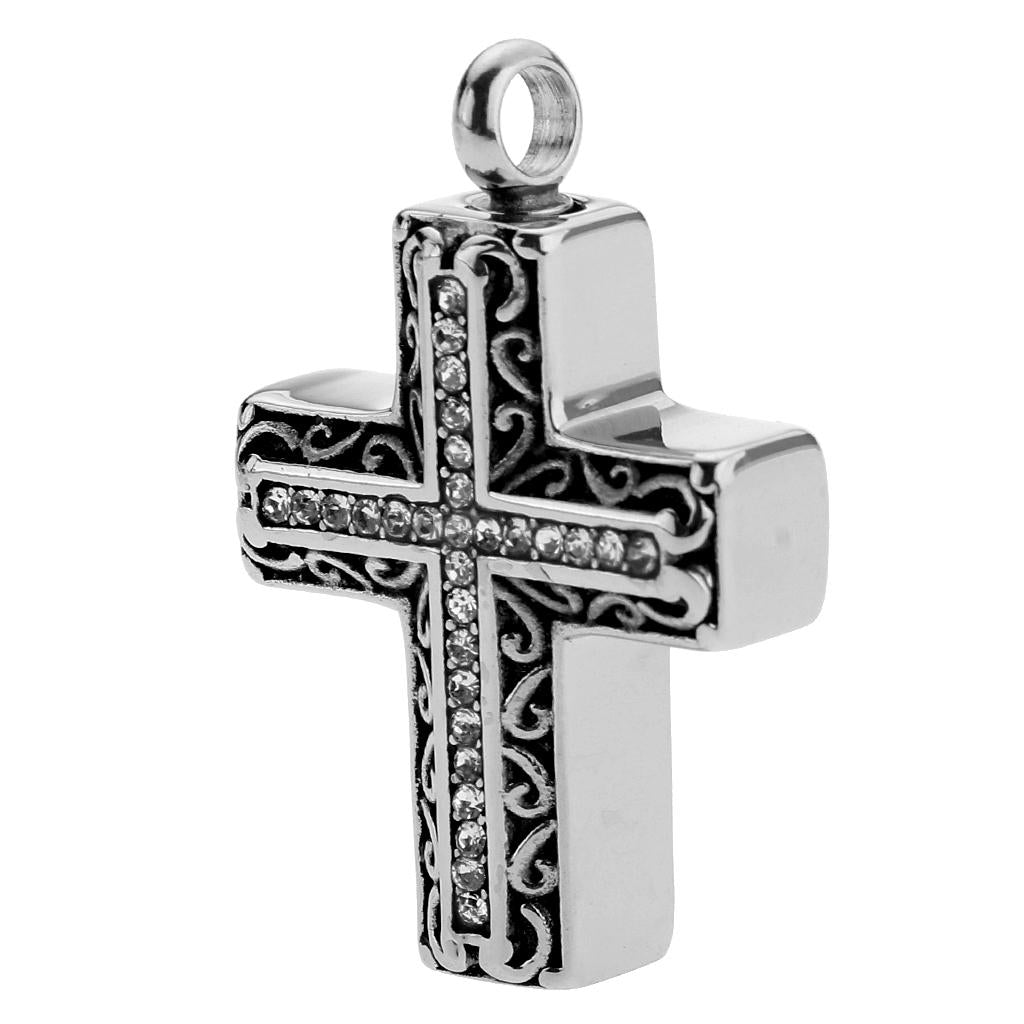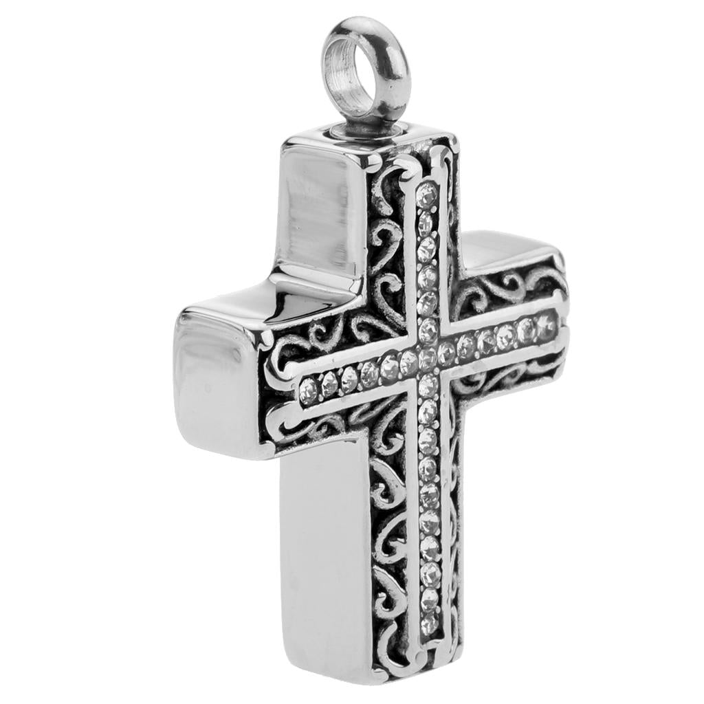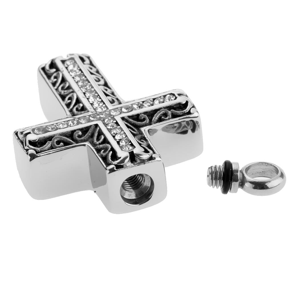 Black silver cross design keepsake pendant with rhinestone decorative is best to cherish your most love's Memory;