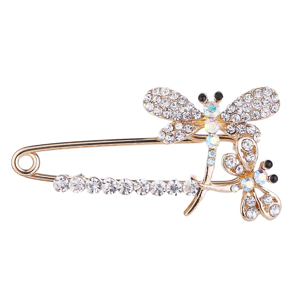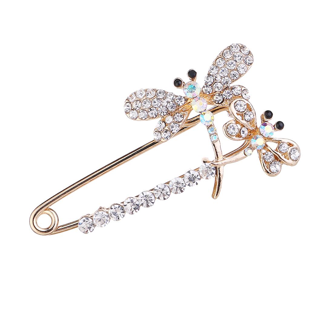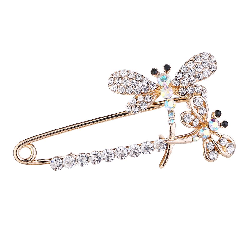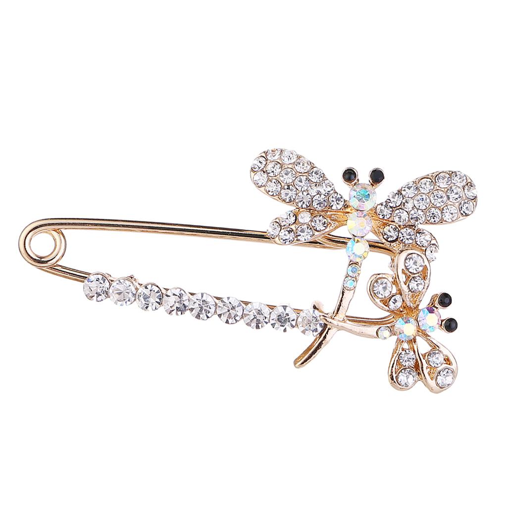 Charming crystal rhinestone dragonfly brooch large safety pin