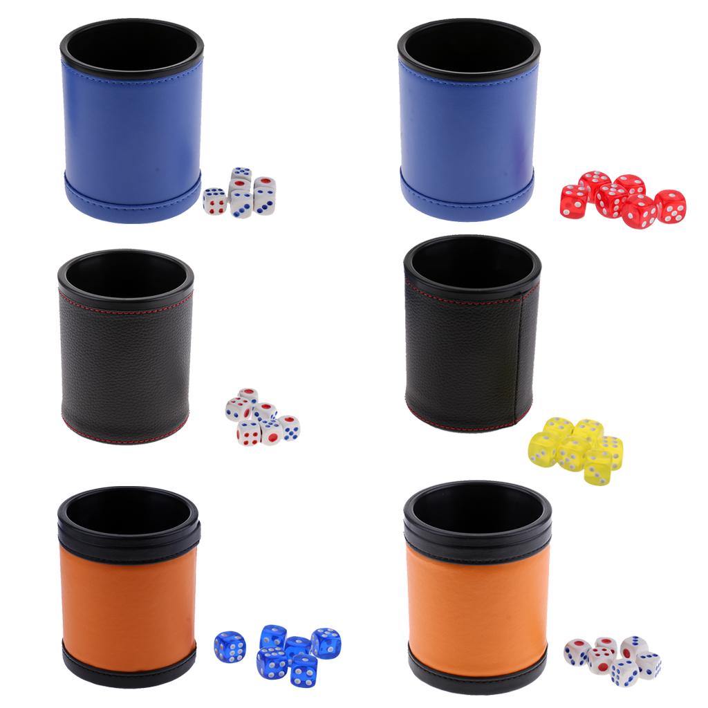 KTV Bar Gambling Casino Texas Poker Game Printing Leather+Plastic Dice Cup Set with Tray/Cover& 6pcs Digital Acrylic Dices