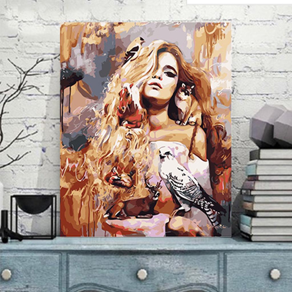 DIY Hand Painted Oil Painting With Beautiful girl Picture