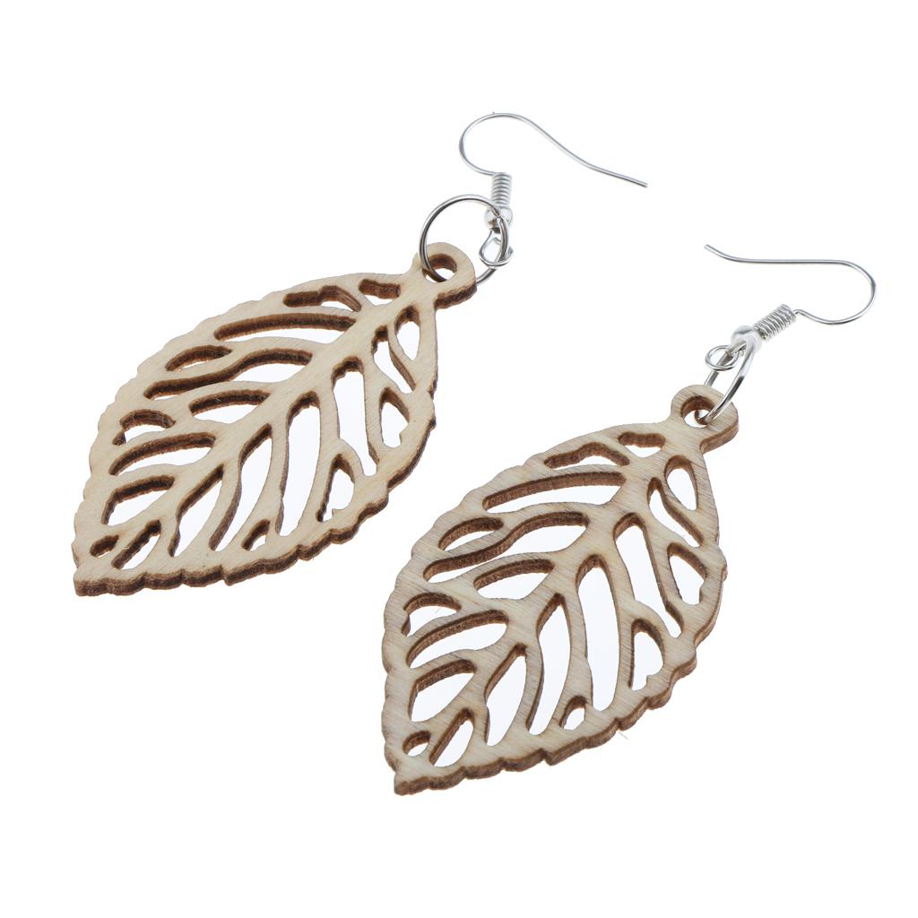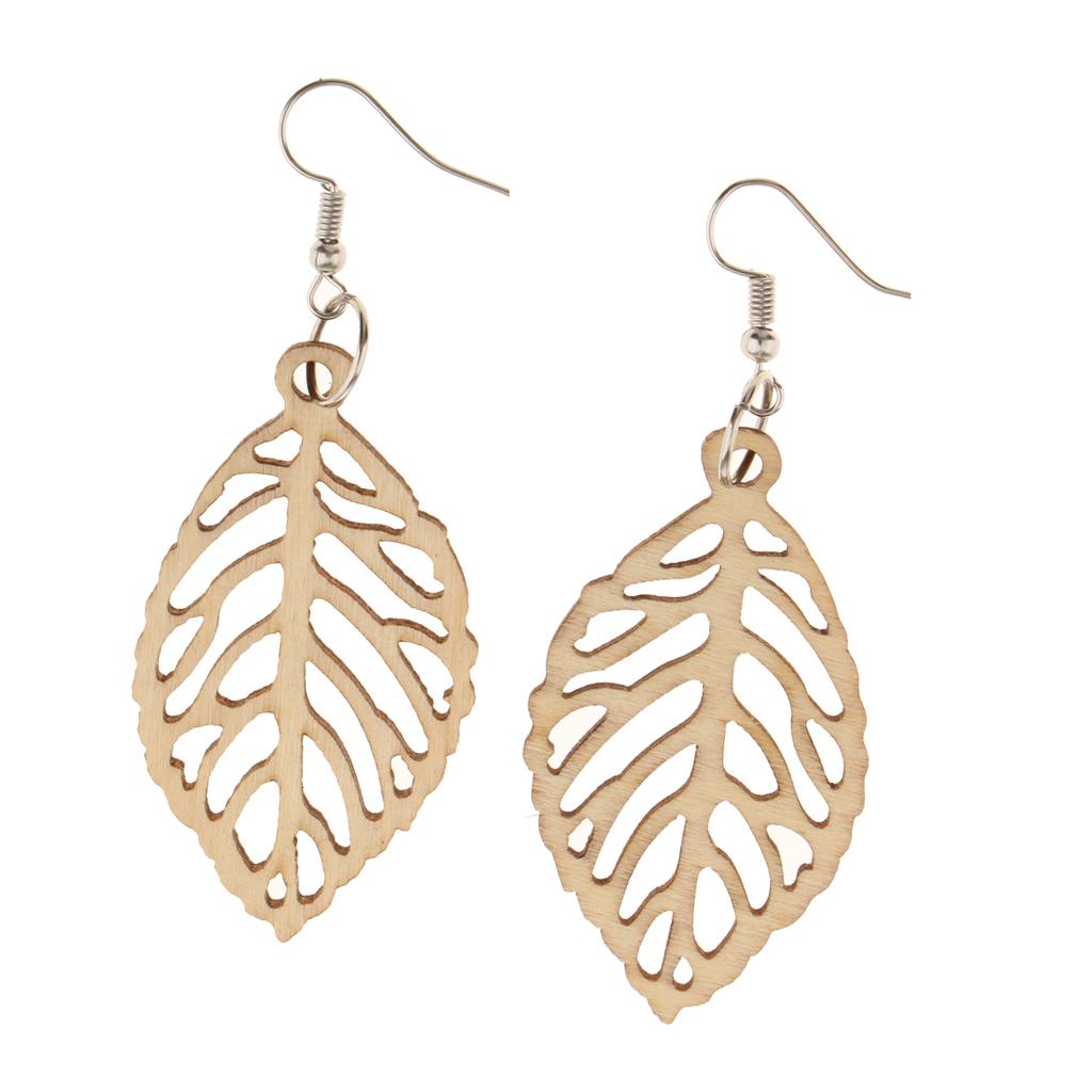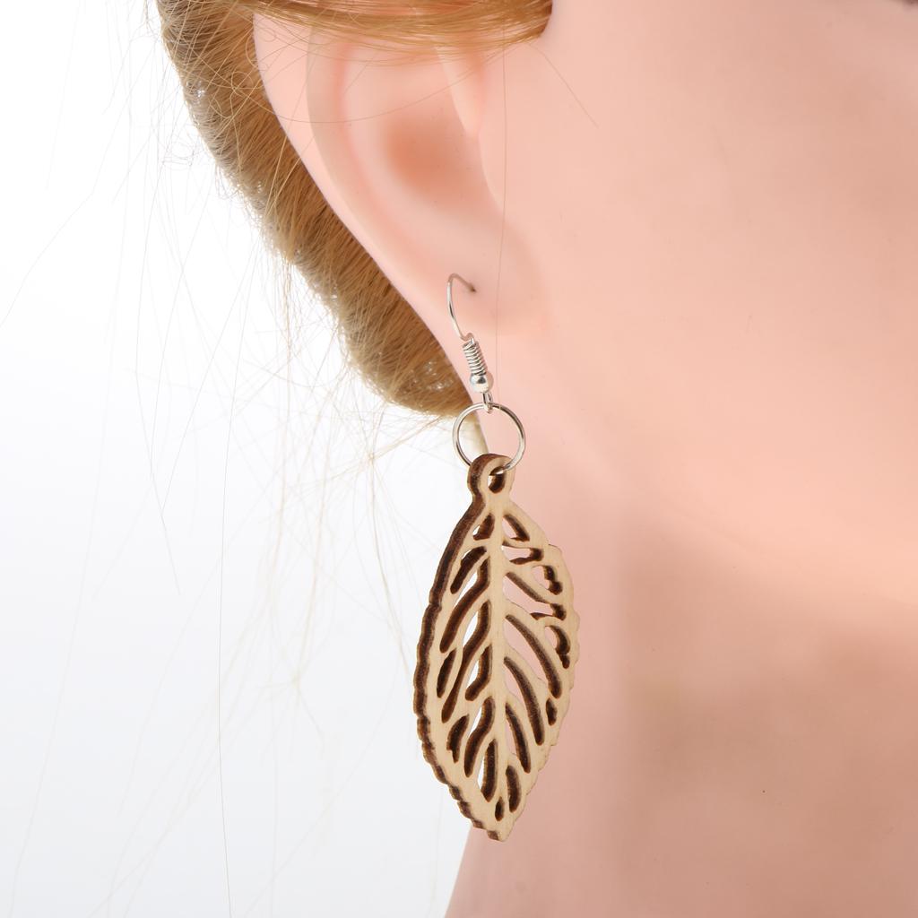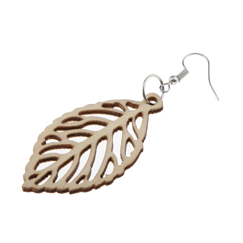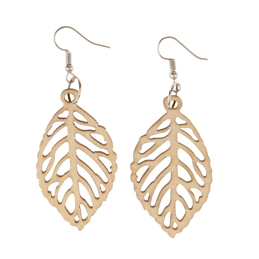 DIY Unfinished Wooden Earrings Tree Leaf Dangle Drop Hook Earrings Party Jewelry