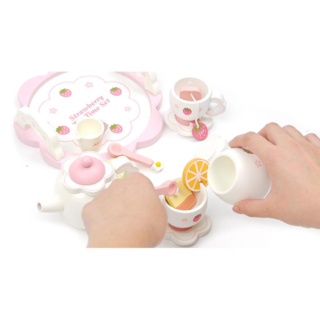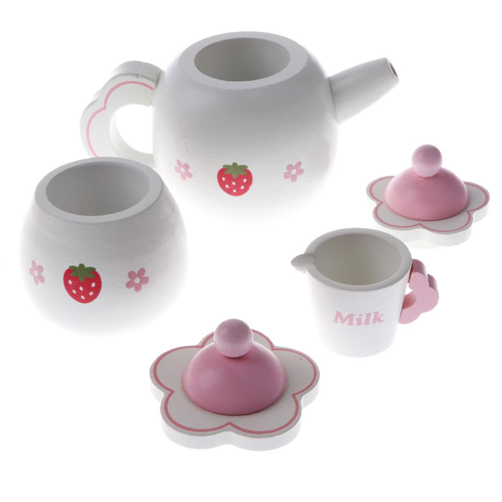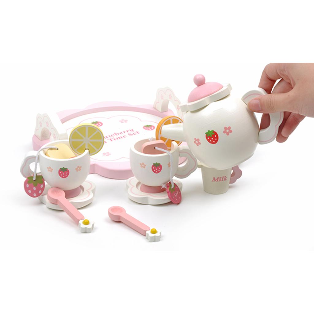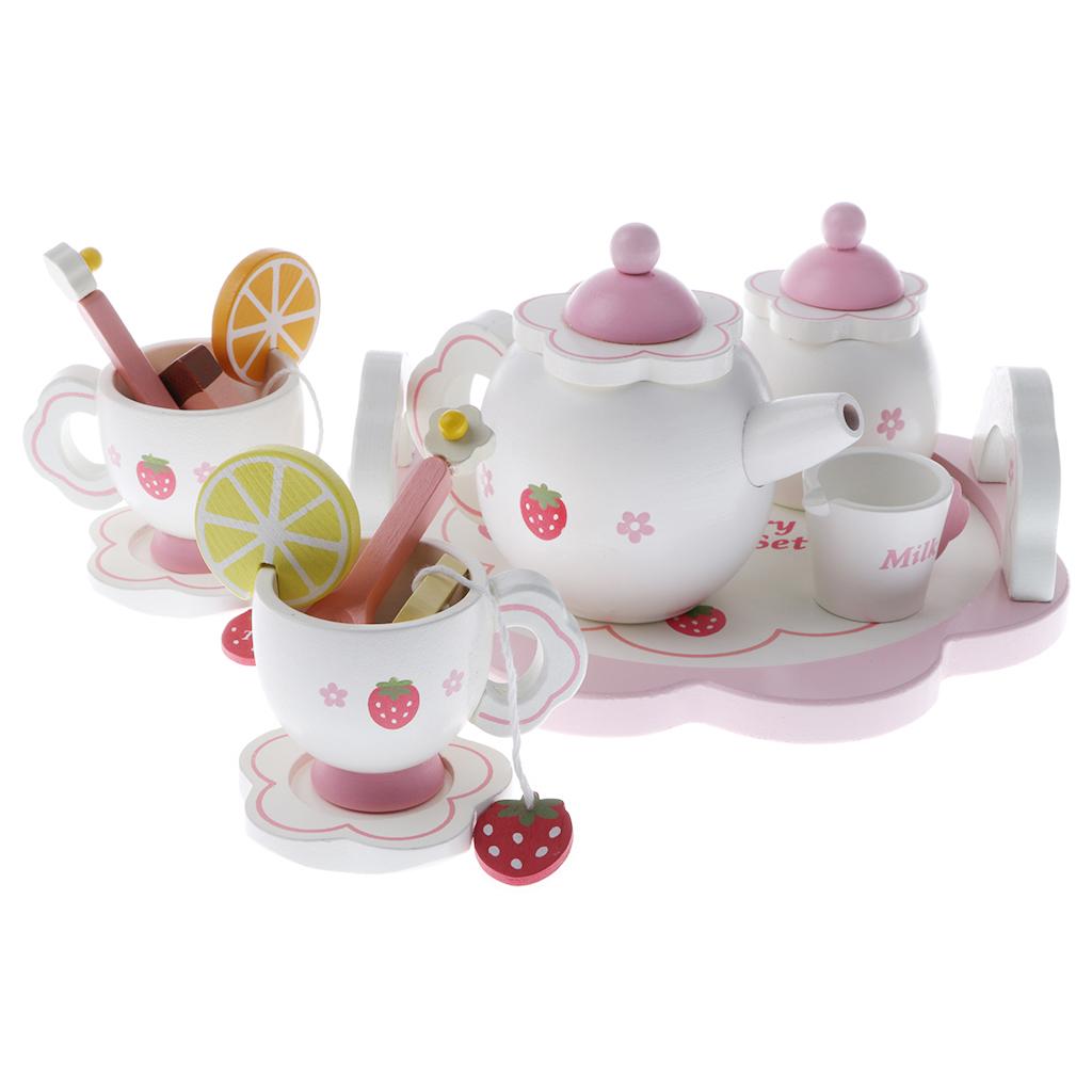 Dollhouse Miniature Wooden Strawberry Afternoon Tea Set Food Kitchen Pretend Play Set