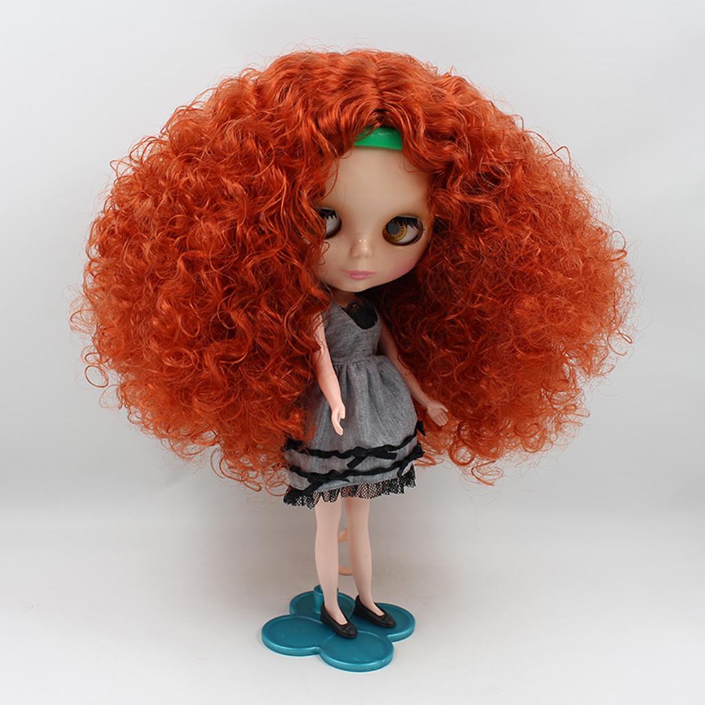 Fantasy Orange Long Explosive Curly Hair Wig with Head Scalp Shell Kit for Custom Blythe