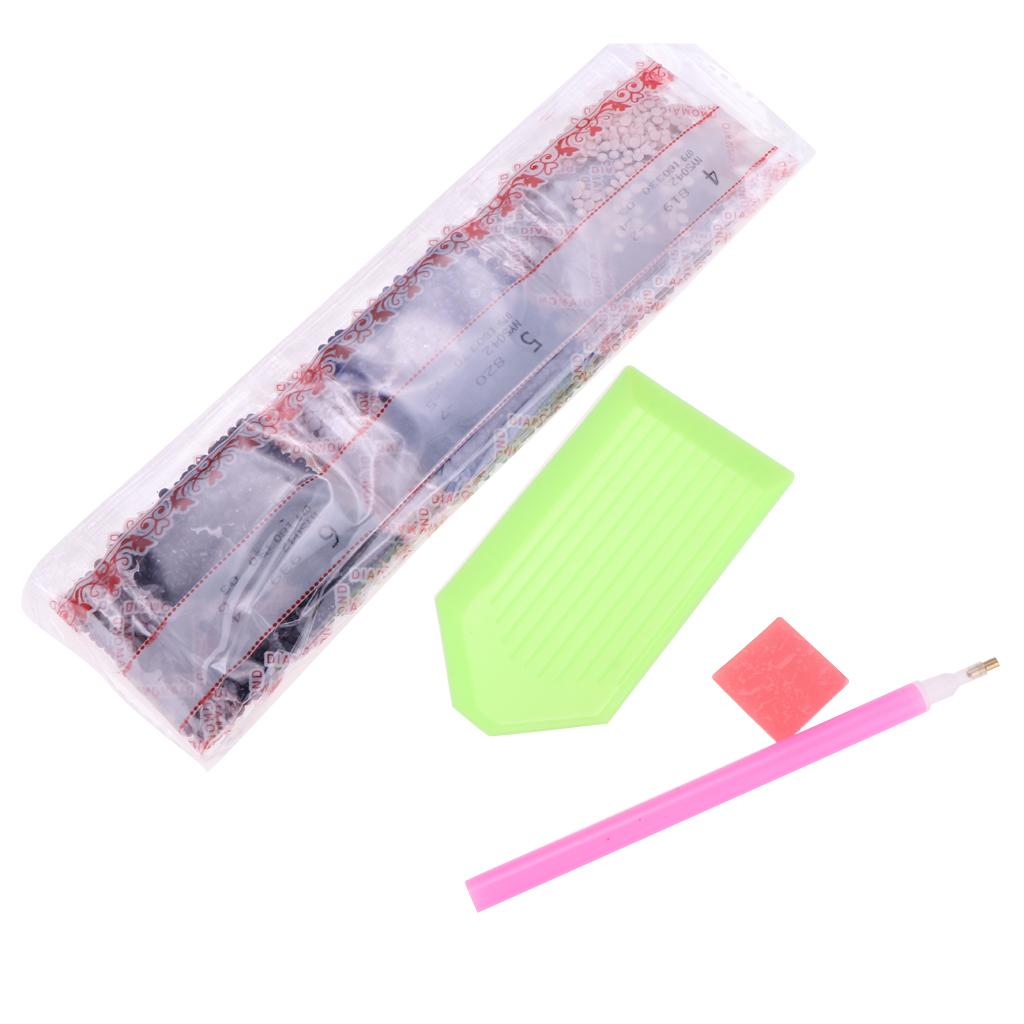 Diamond painting kit item includes: resin diamond, sticky pen, printed cloth, small plate, diamond painting glue.