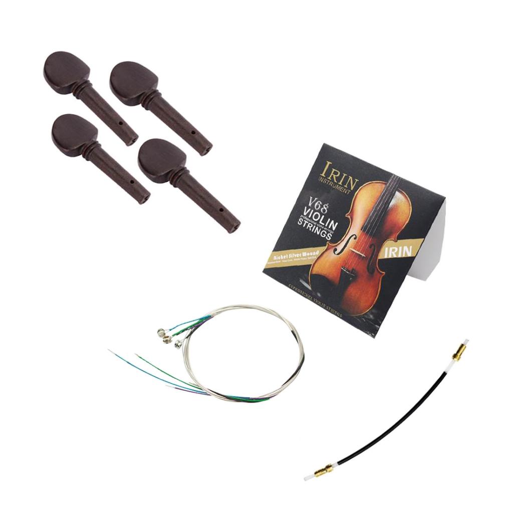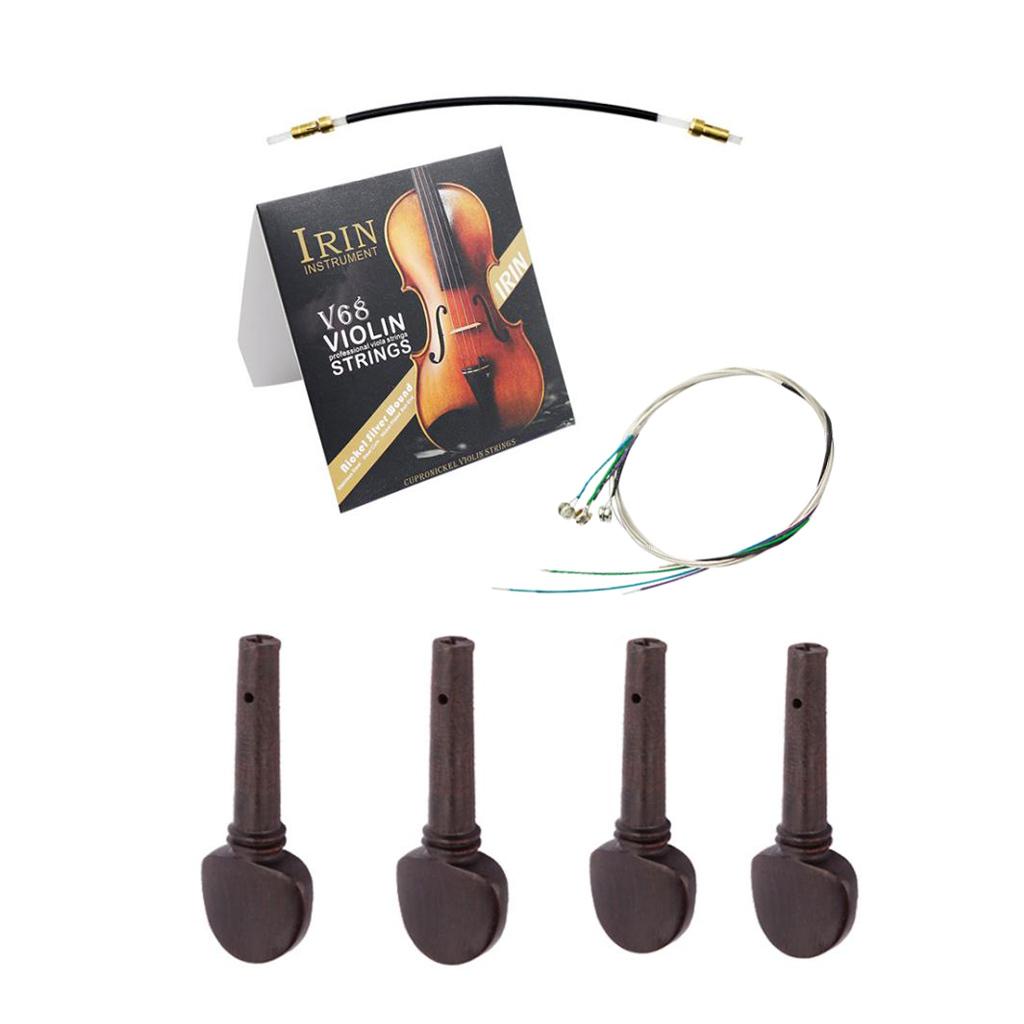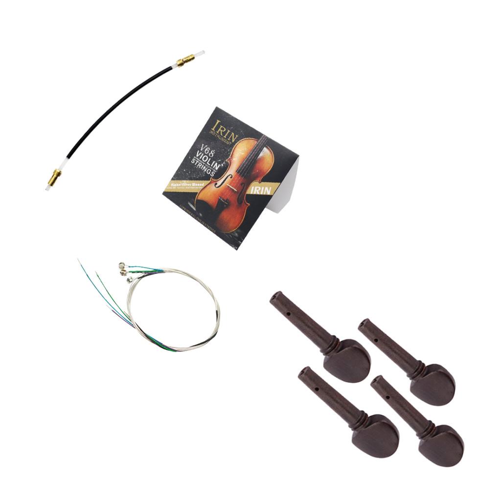 1 Set Violin Fiddle Alloy Strings with Ebony Tuning Peg, Nylon End Rope.