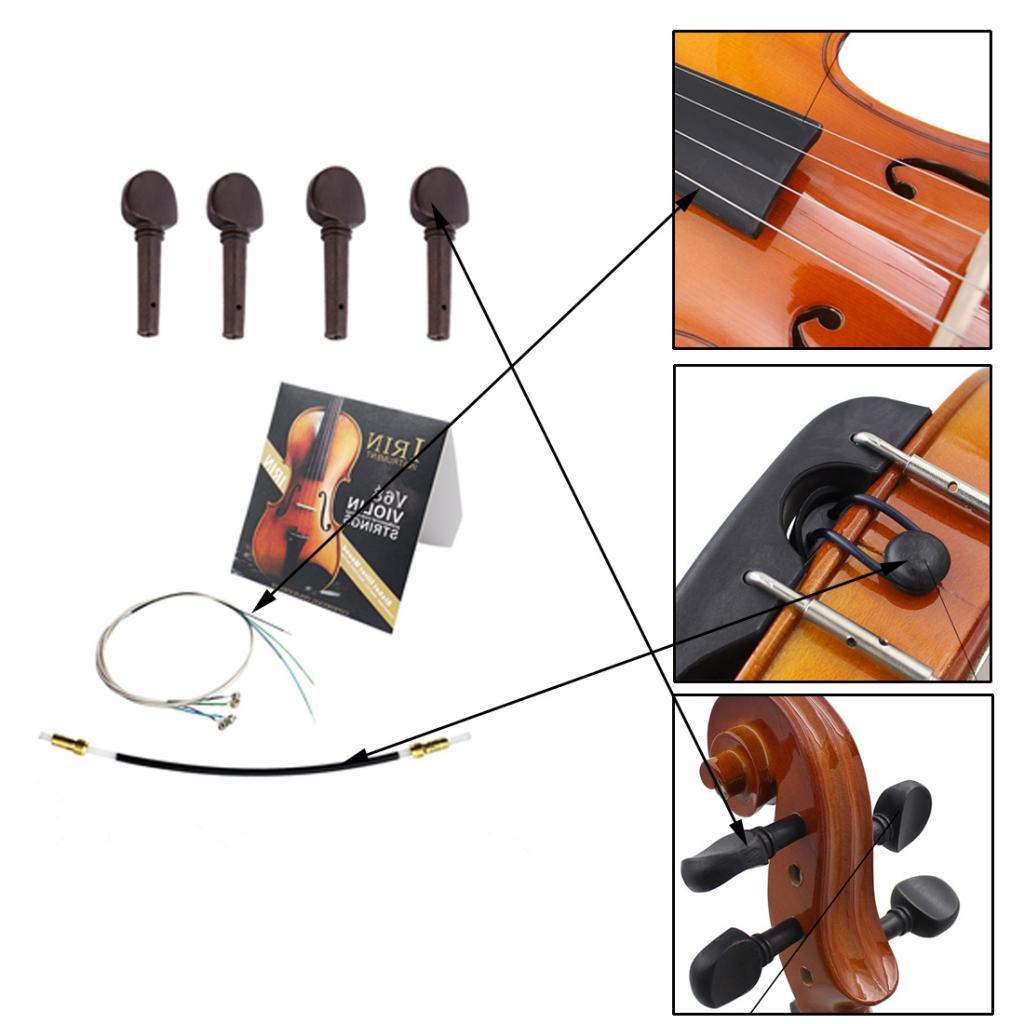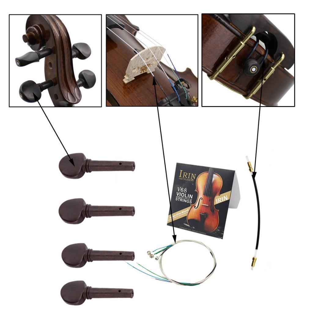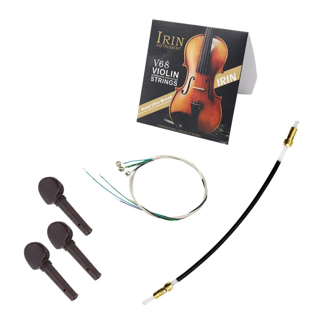 1 Set Violin Fiddle Alloy Strings with Ebony Tuning Peg, Nylon End Rope.