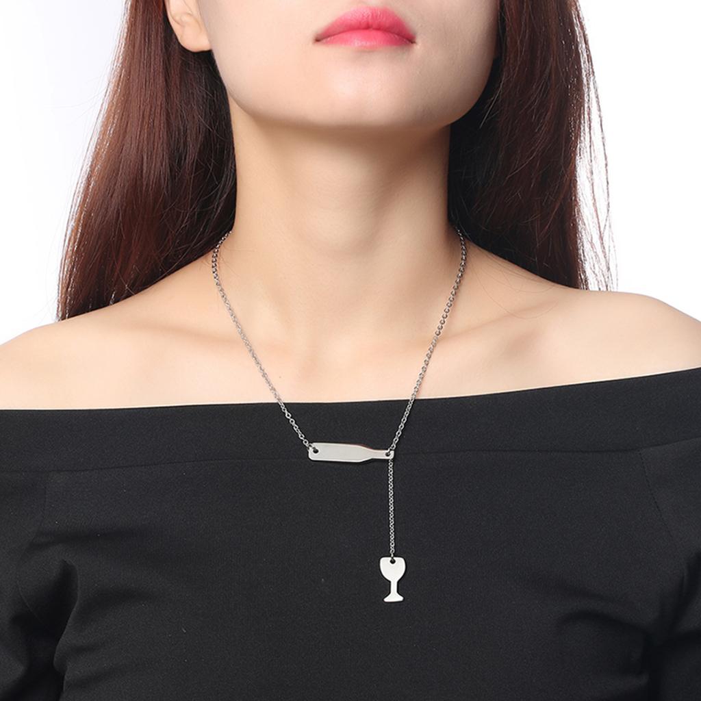 Elegant Winebottle Stainless Steel Pendant Necklace Chain Women Girl Accessory