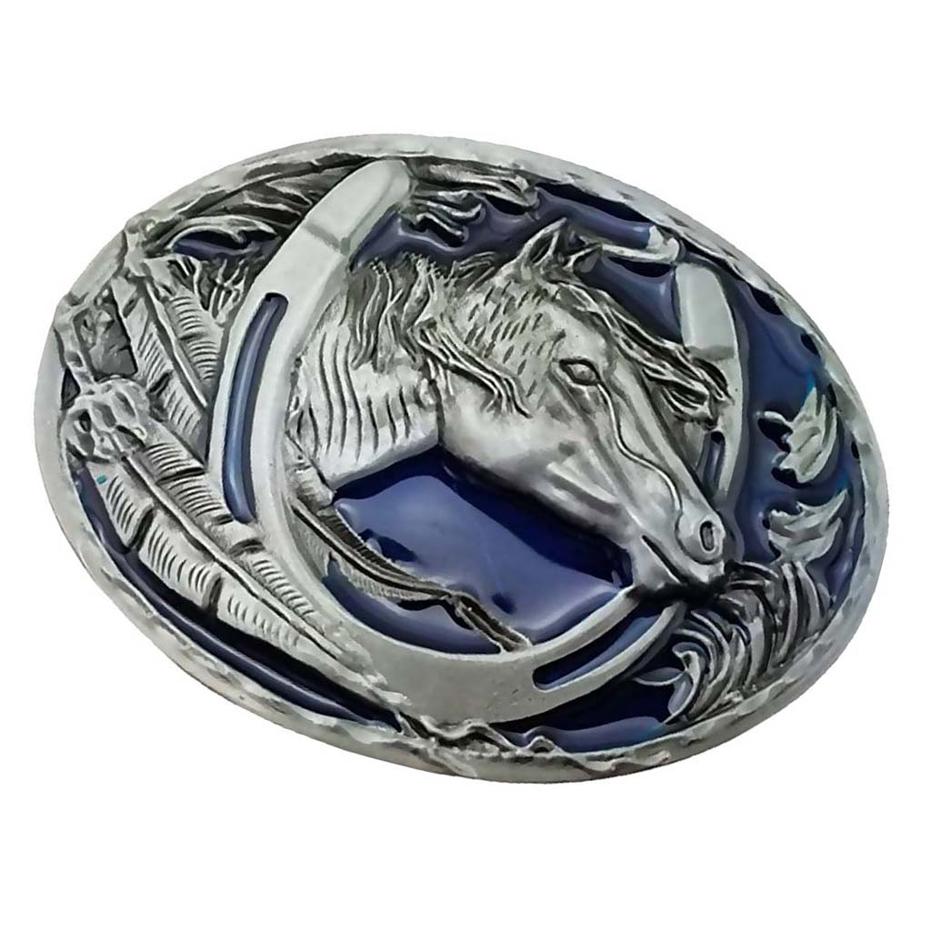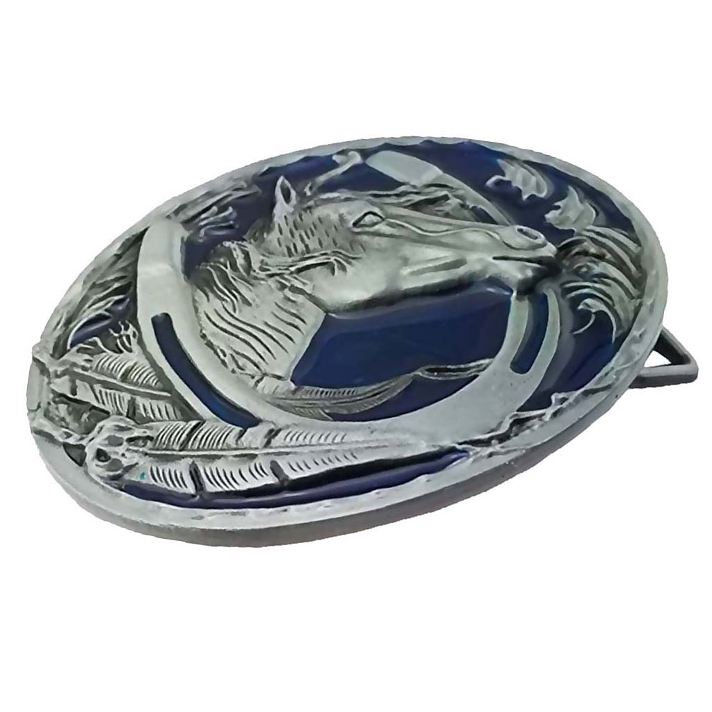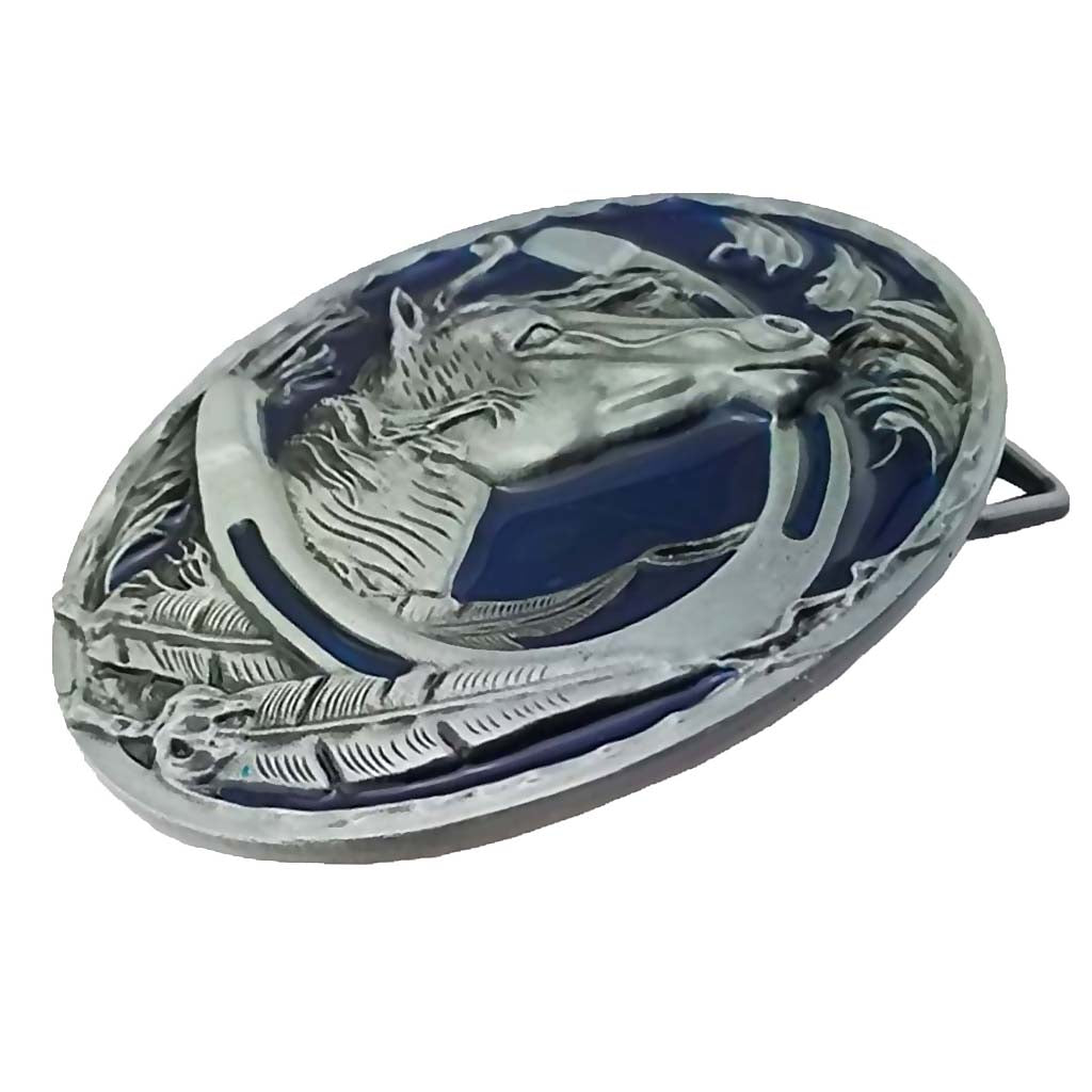 Equestrian Horse Head Feather Pattern Hip Hop Cowboy Western Zinc Alloy Belt Buckle for Men's Gifts.