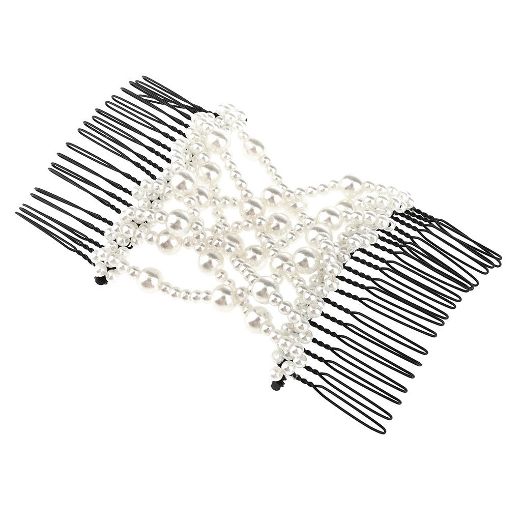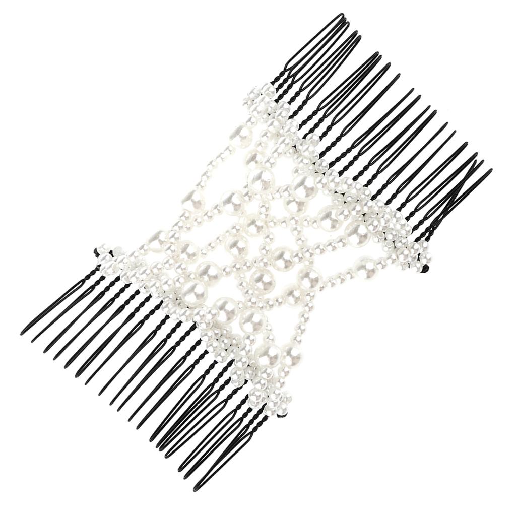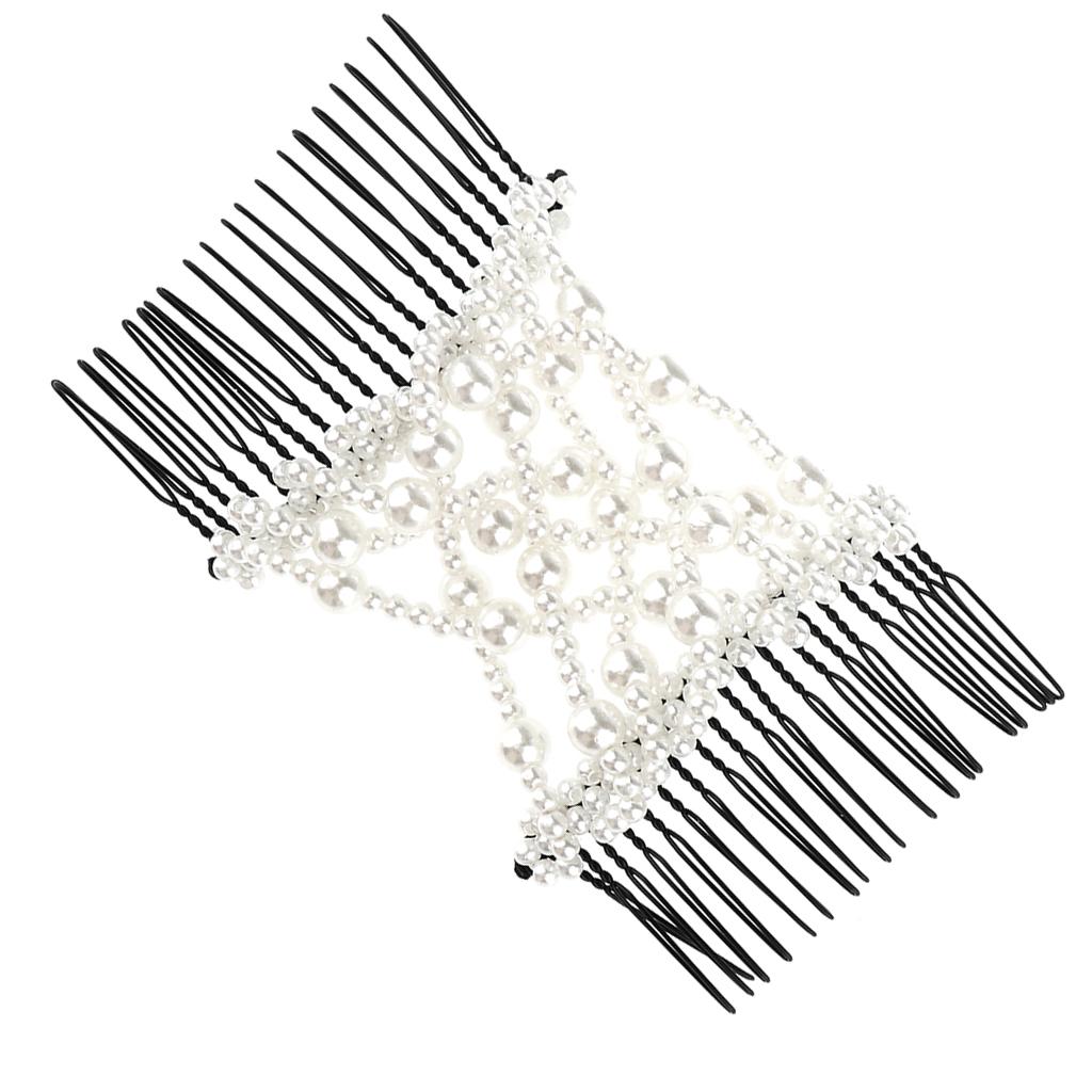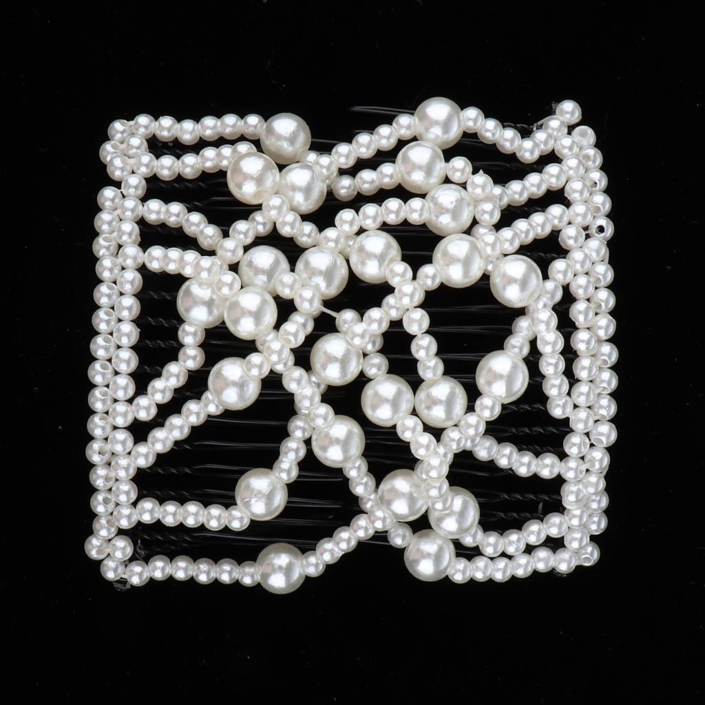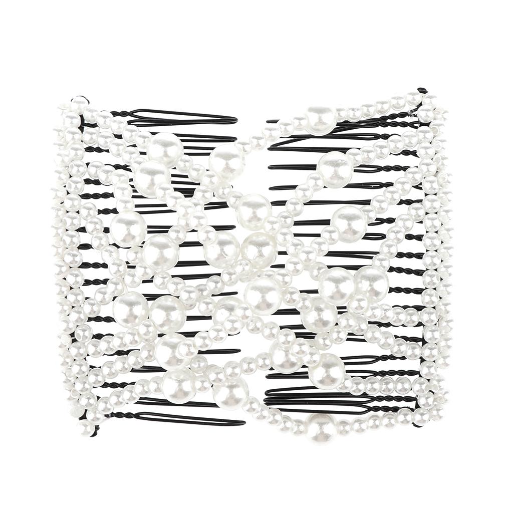 EZ Magic Butterfly Pearls Double Hair Comb Clip, Stretchy, White