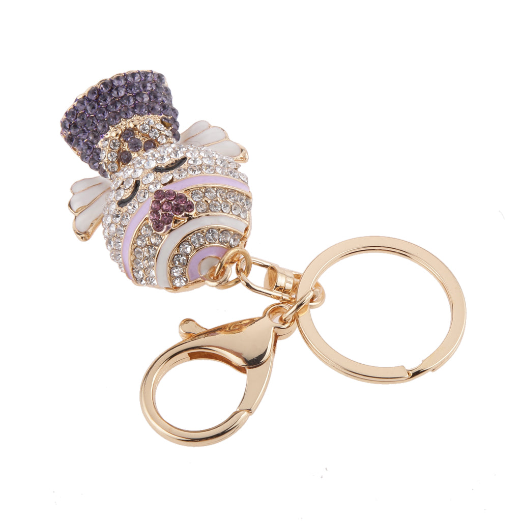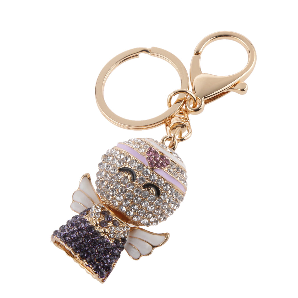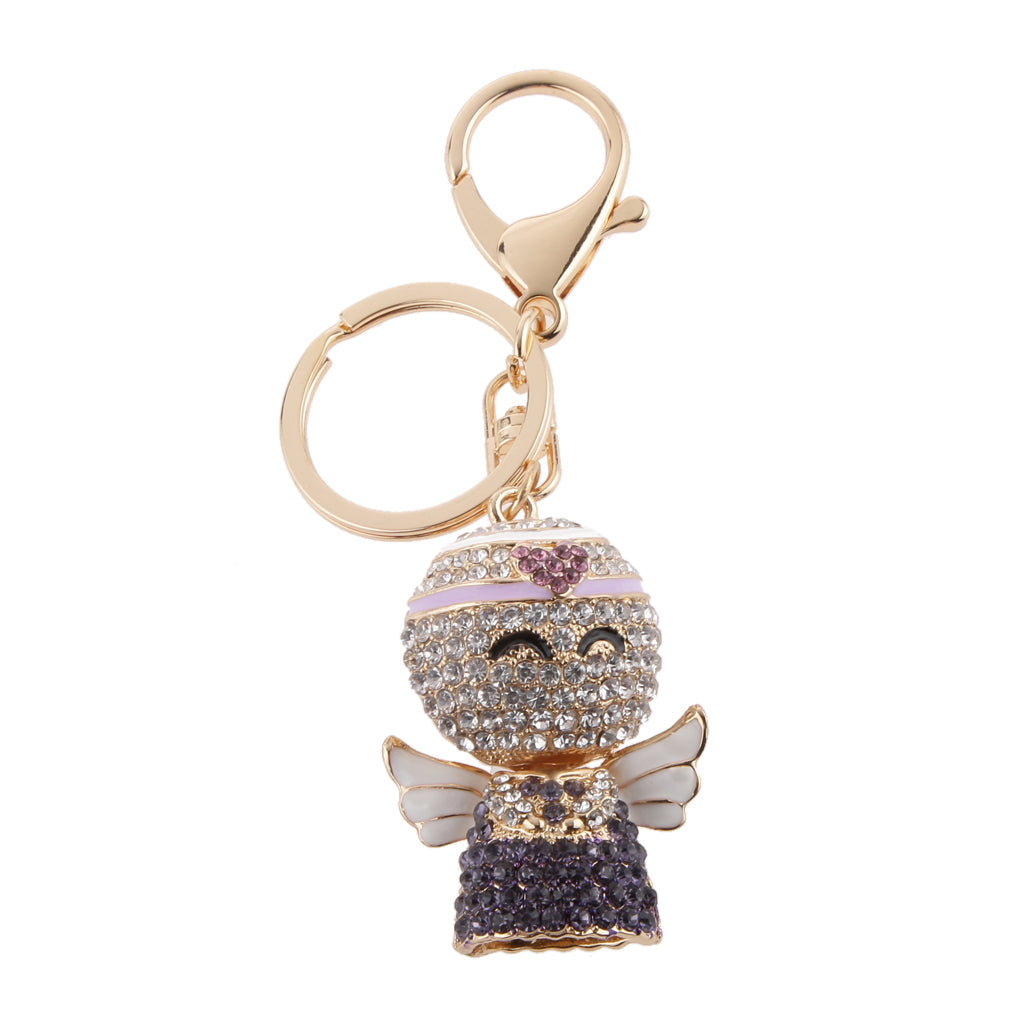 Fashion Rhinestone Crystal Purple Angel Charm Purse Bag Key Ring Keychain Keyfob