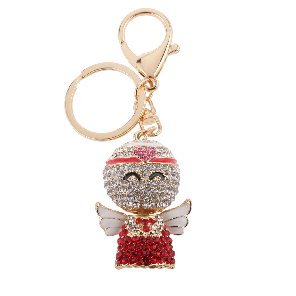 Fashion Rhinestone Crystal Red Angel Charm Purse Bag Key Ring Keychain Keyfob