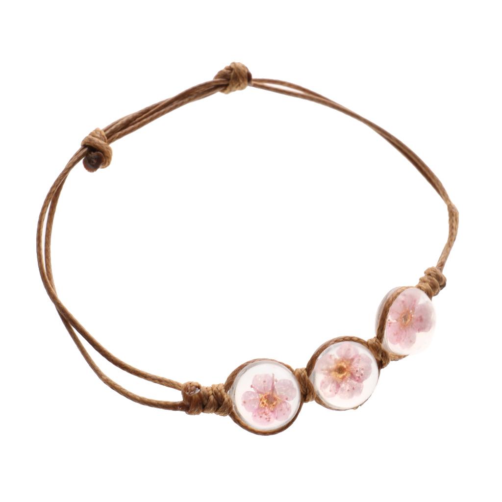 Fashion Women Pink Glass Dried Flower Bracelet Bangle