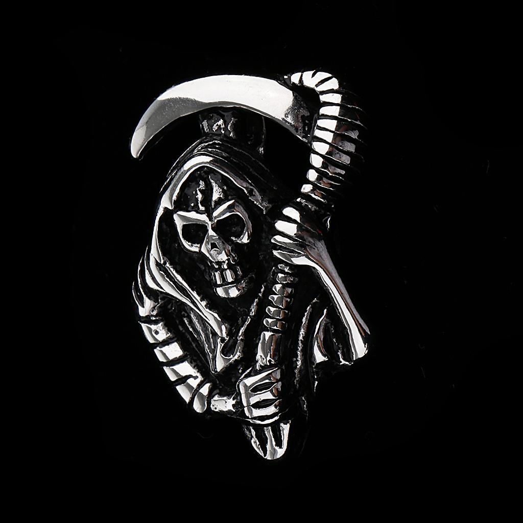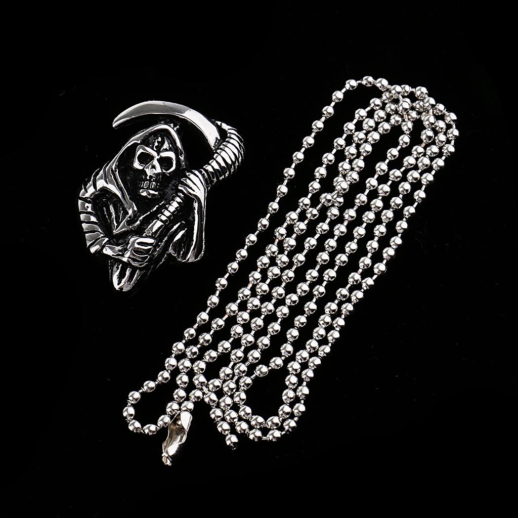 Fashion Women Skeleton Ghost Head Sickle Stainless Steel Necklace