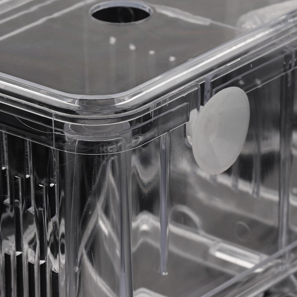 Transparent cover can prevent fish jumping out of the box, and the middle hole is convenient for feeding, it also can prevents adult fish to attack juvenile fish.