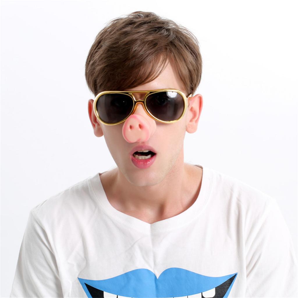 Funny party sunglasses designed with large pig nose, gold plated frame
