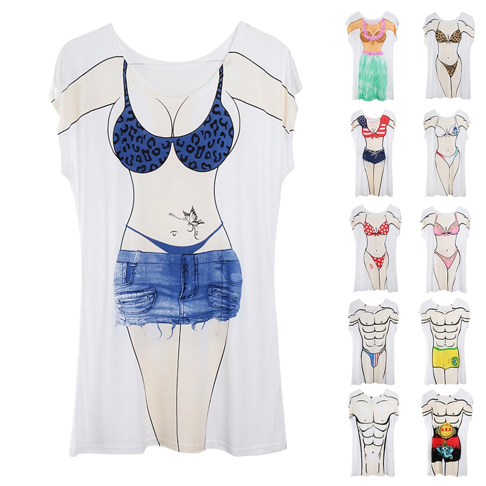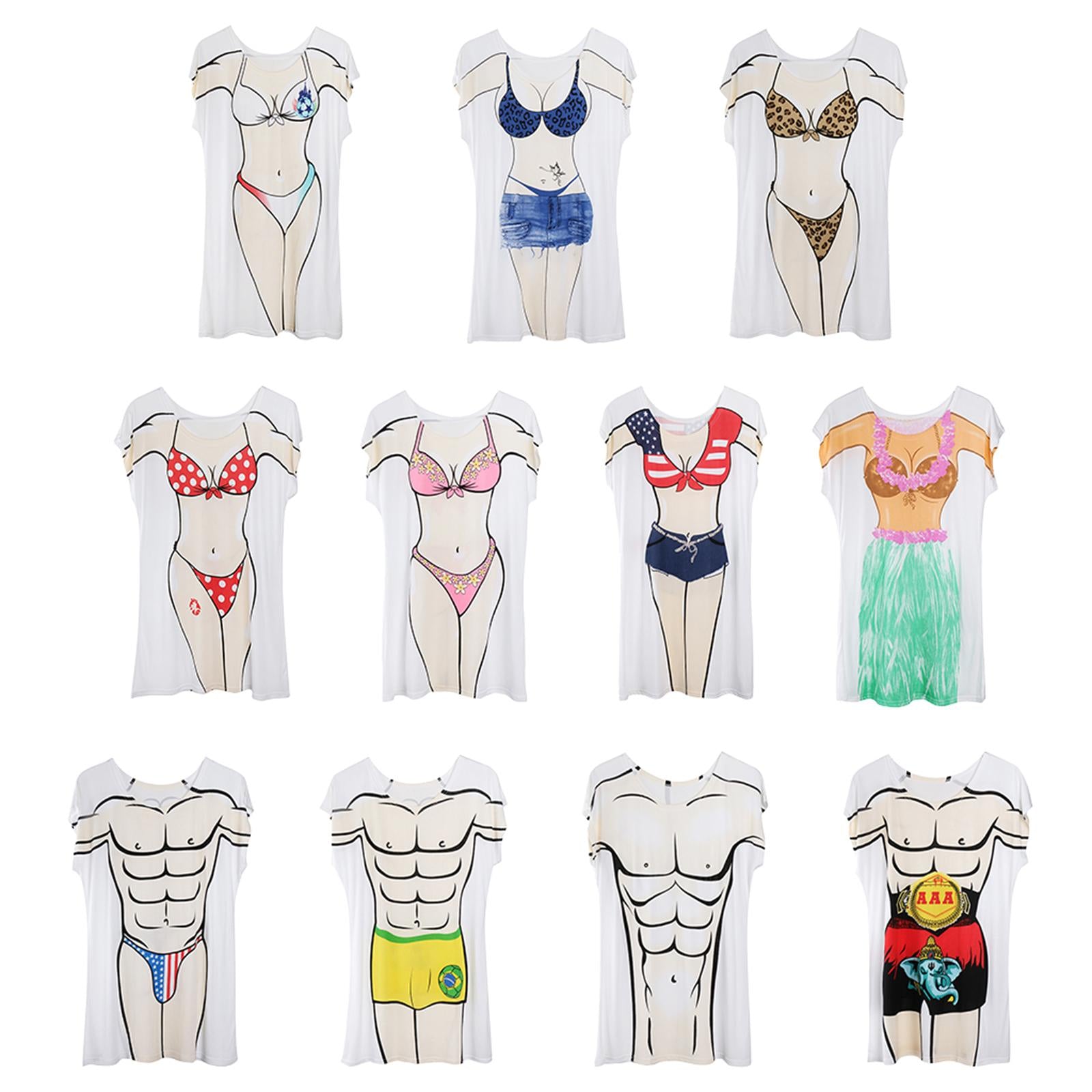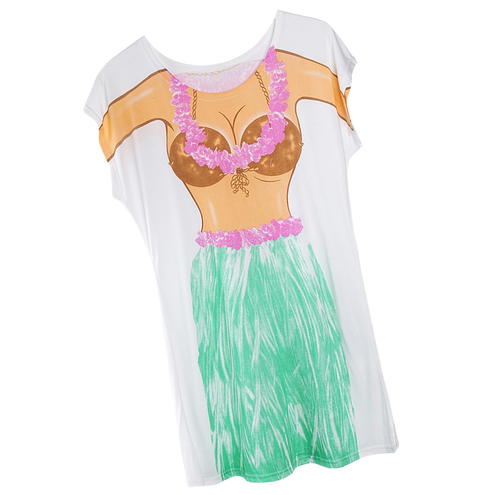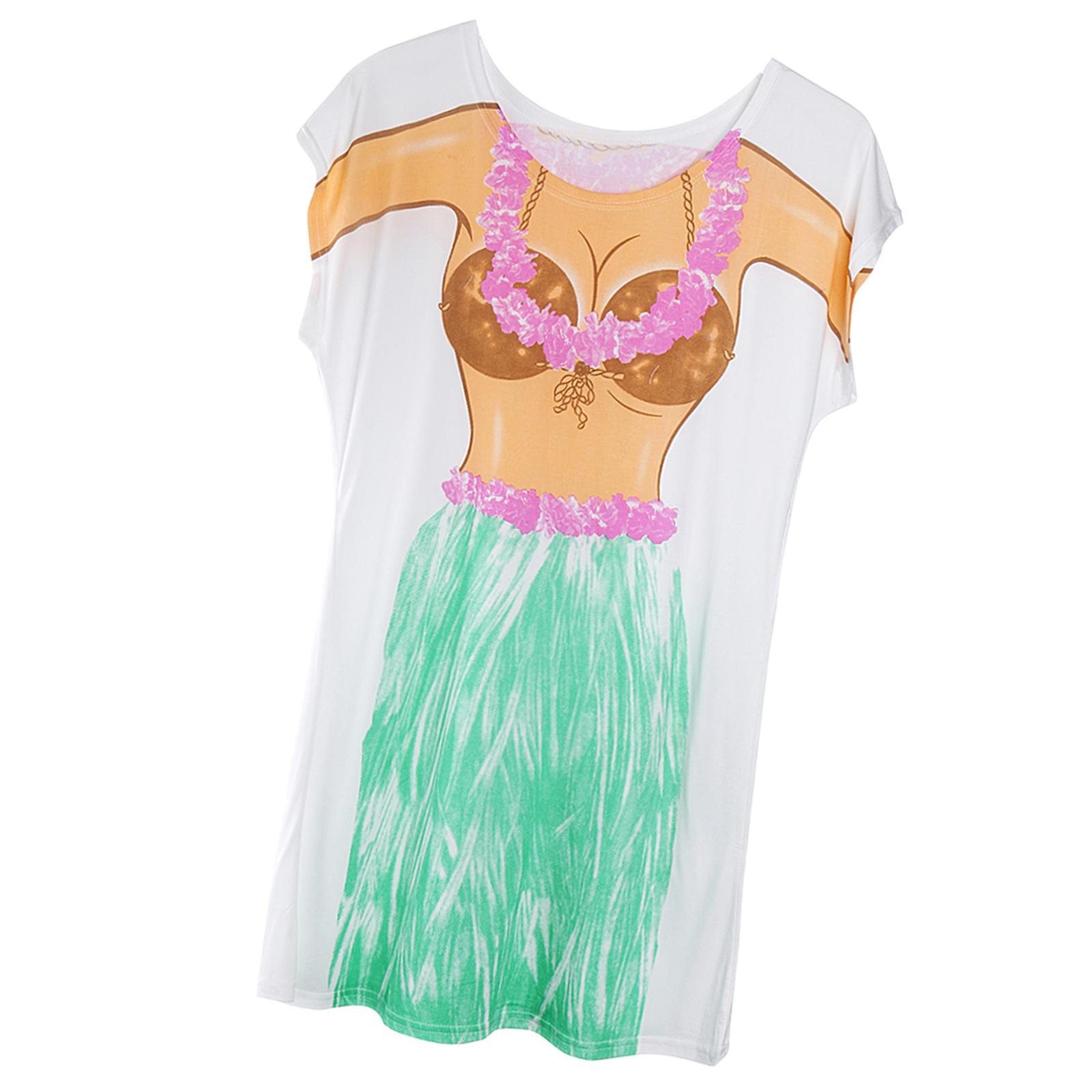 Fashion funny Hawaiian hula skirt bikini pattern beachwear T-shirt
