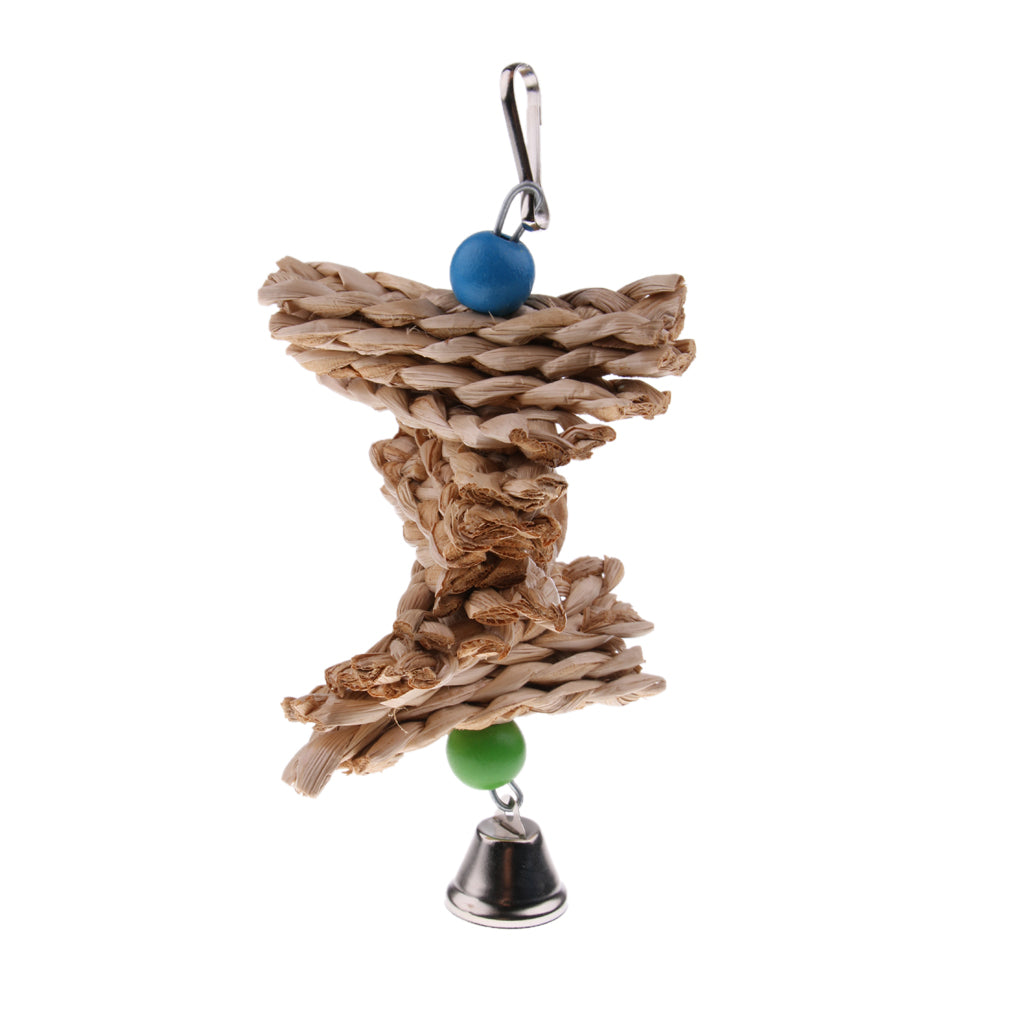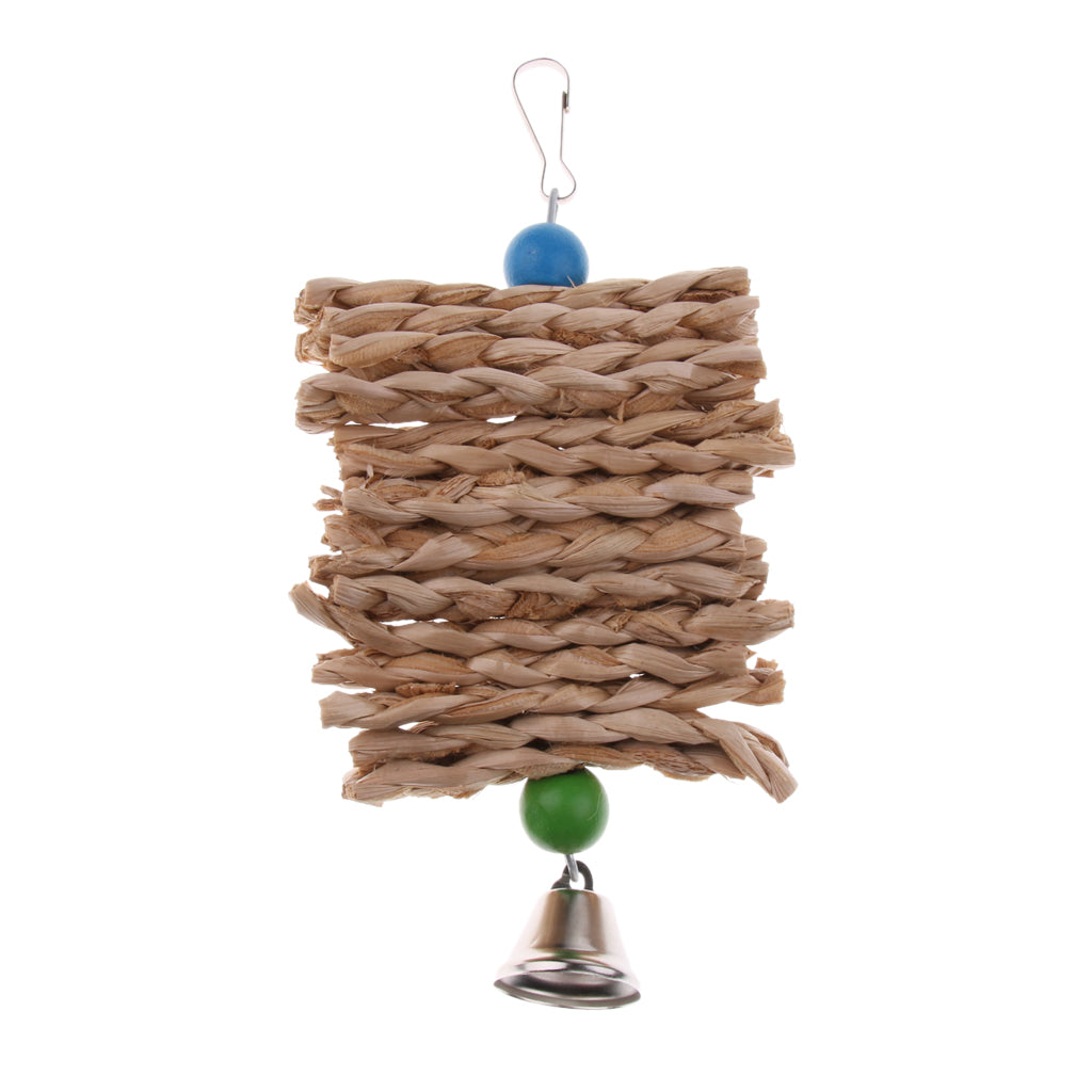 Hanging Natural Grass Pet Bird Chewing Toy with A Bell.