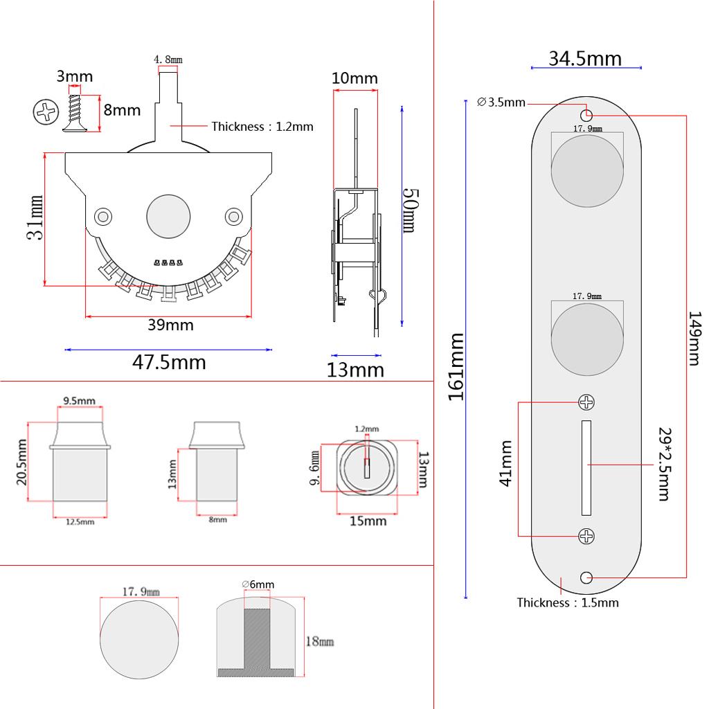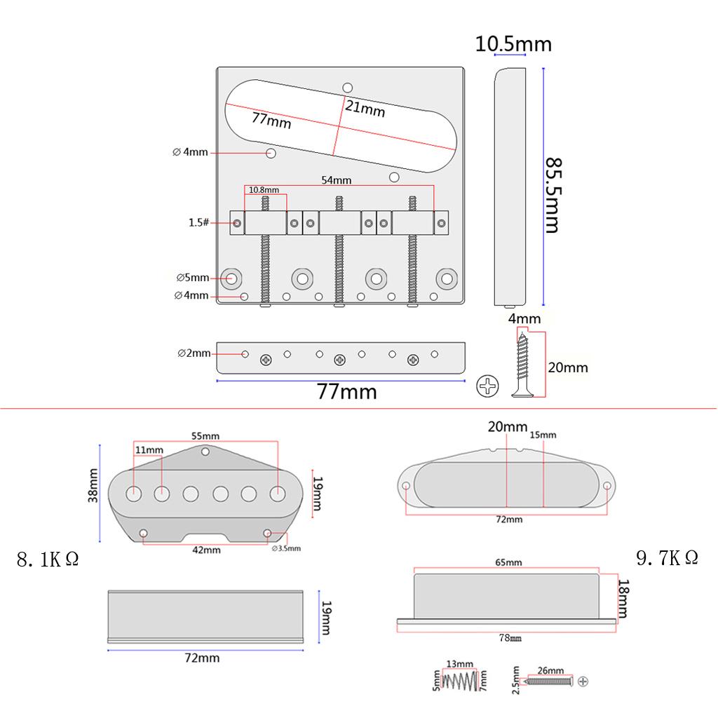 Guitar Bridge Pickup Assembly Set Musical Instrument Accessory for TL Electric Guitar 3.37x3.03x0.41inch