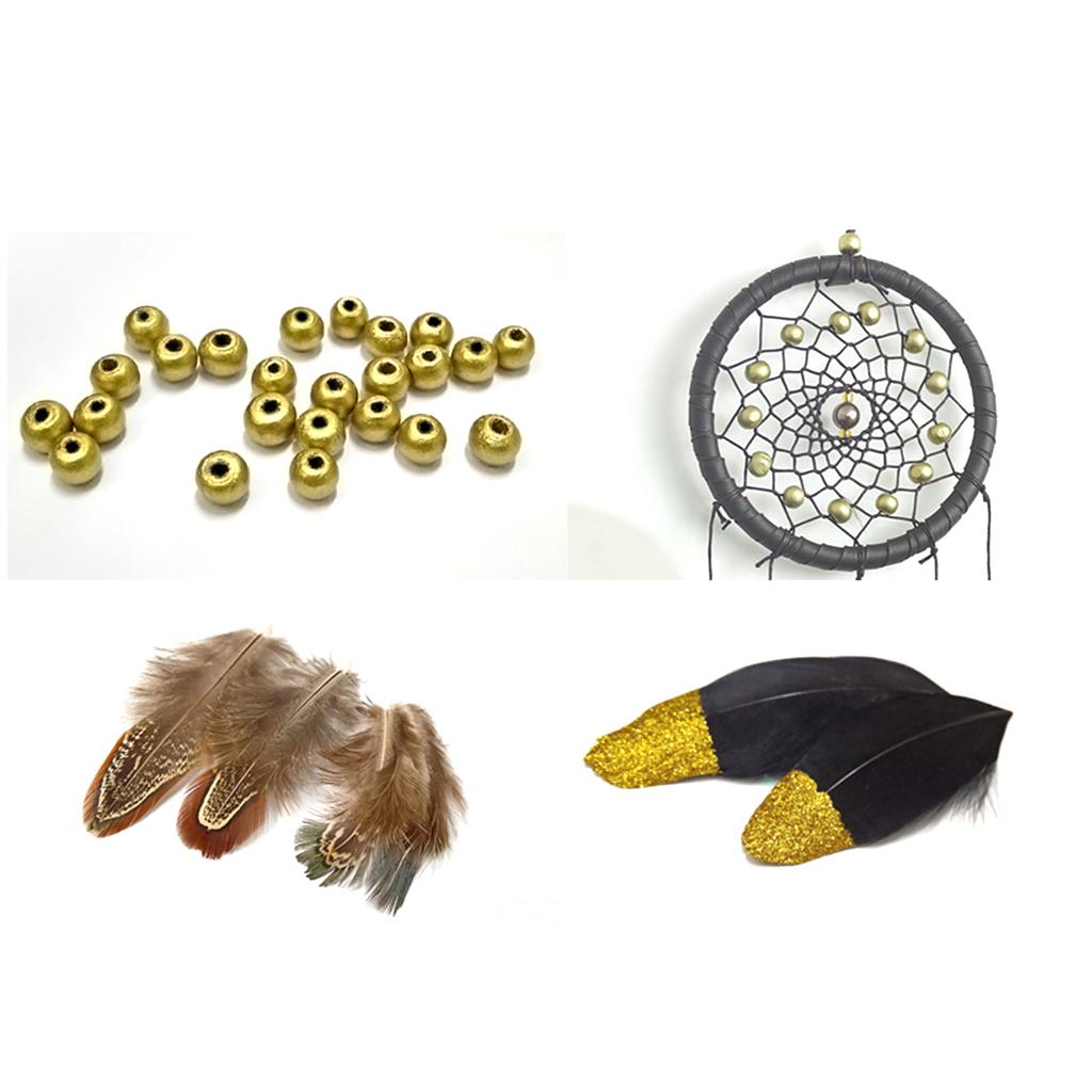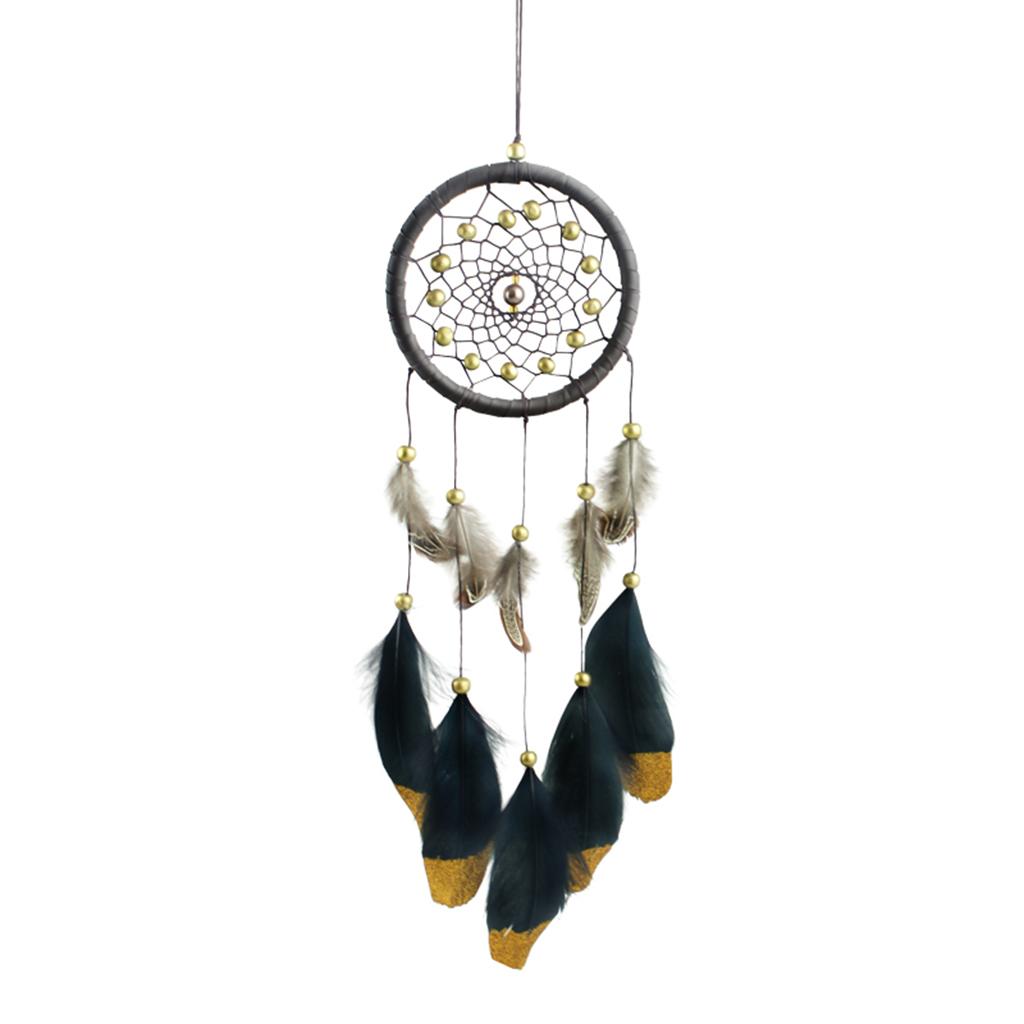 Handmade Brown PU Leather Dream Catcher With Gold Beads Home Room Decoration