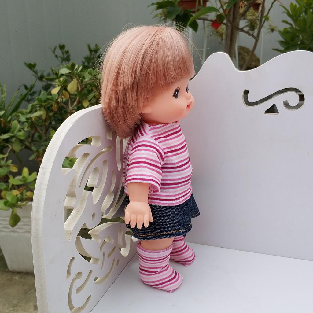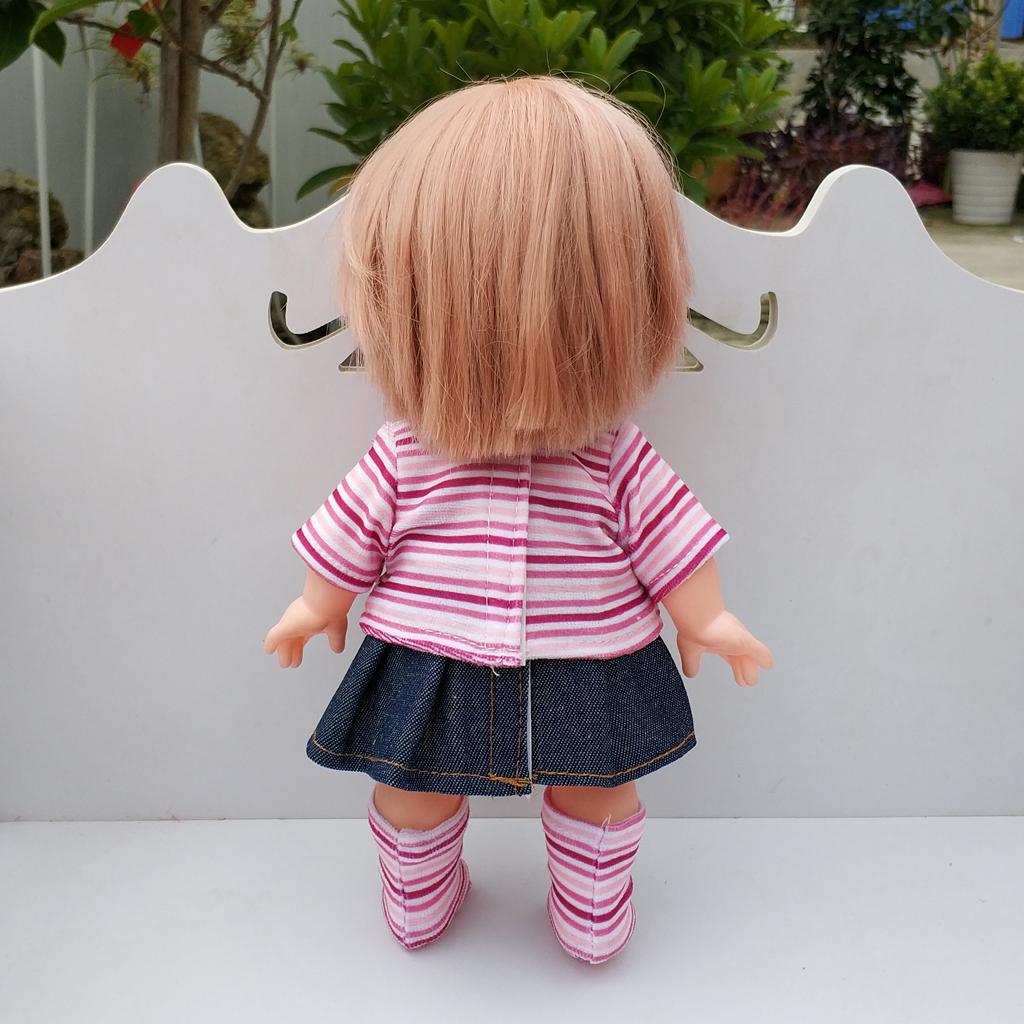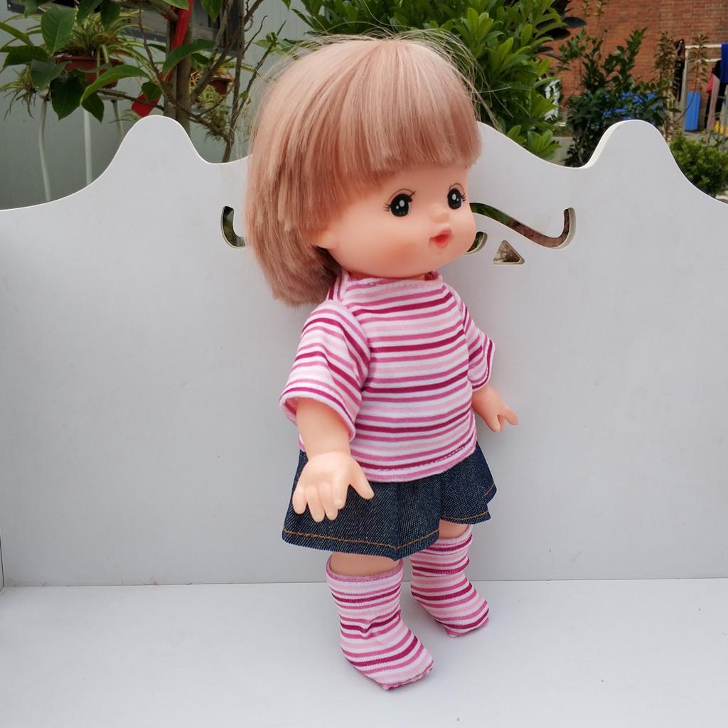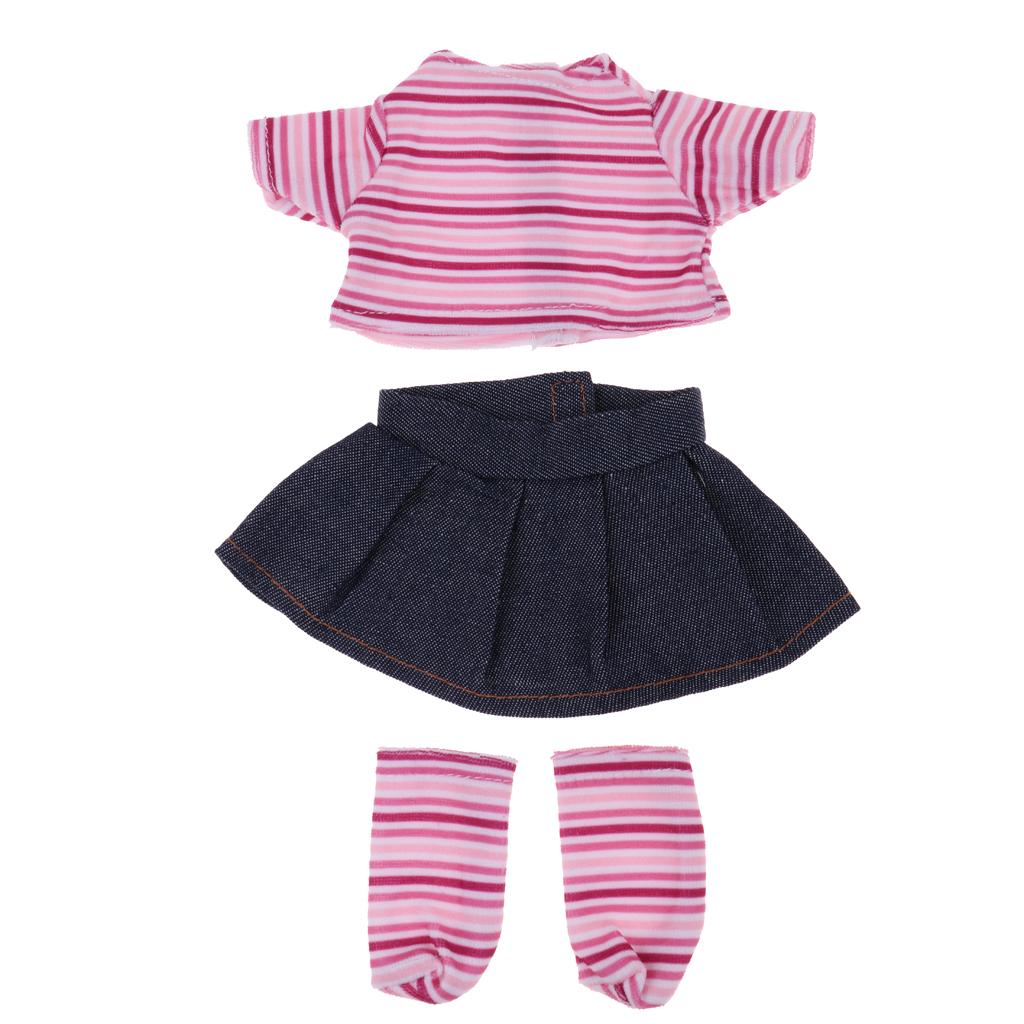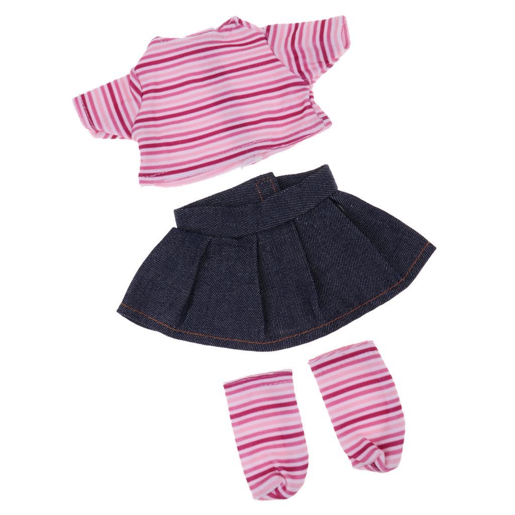 Handmade Cute Stripe Top Denim Skirt And Sock Outfit For Mellchan Doll 9-11inch for Reborn Baby Girl Dolls Clothing Accessory