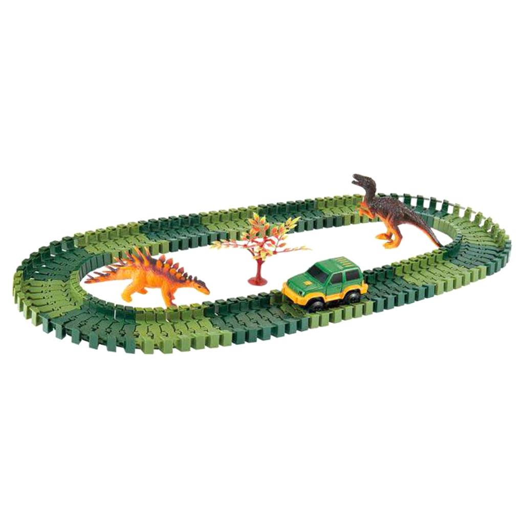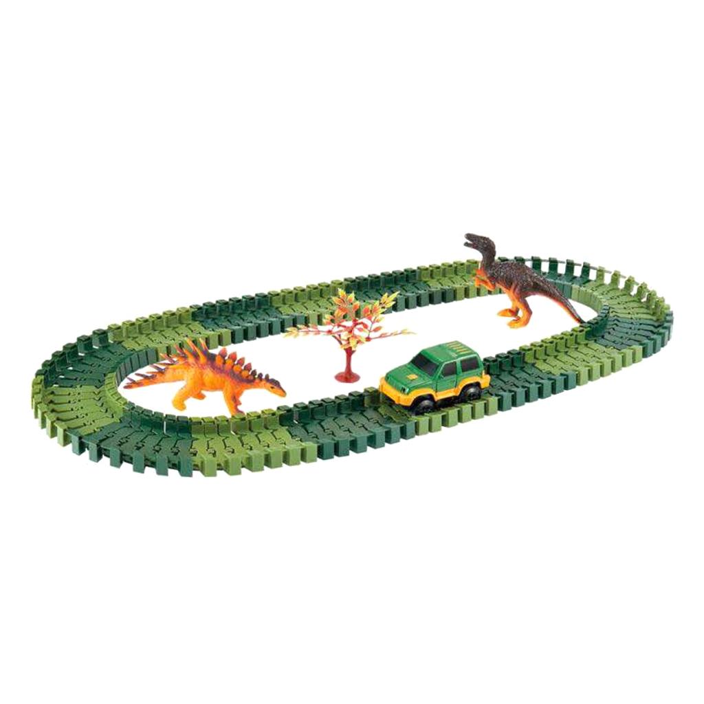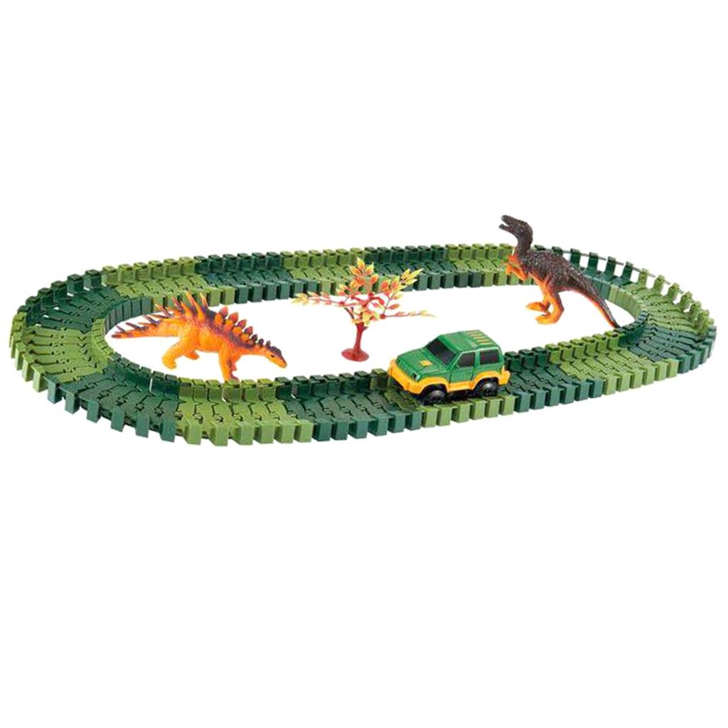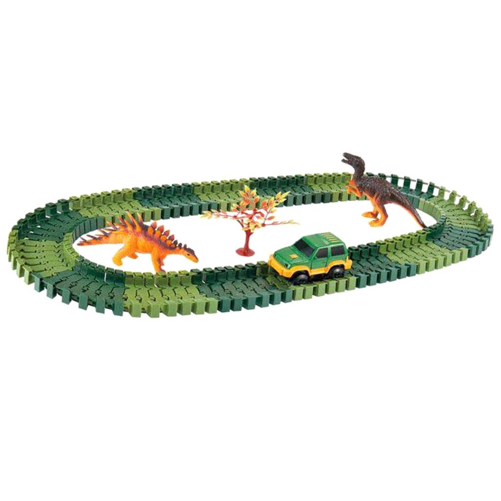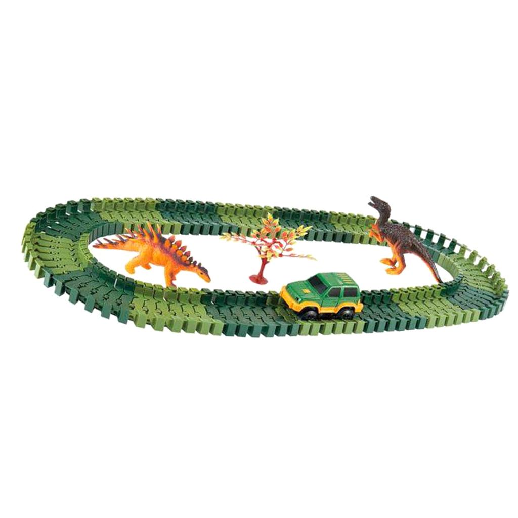 DIY Assembly Jurassic Dinosaur Themed Track Racing Car Model Playset with Flash Light Kids Vehicle Toy Gift