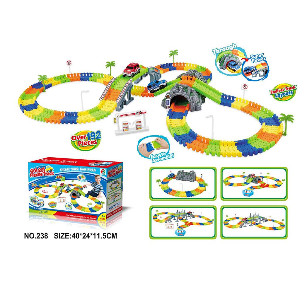 Hot DIY Assembly Flexible Track Racing Car Model Kits Playset with Light Kids Educational Toy Xmas Gift -192 Pieces